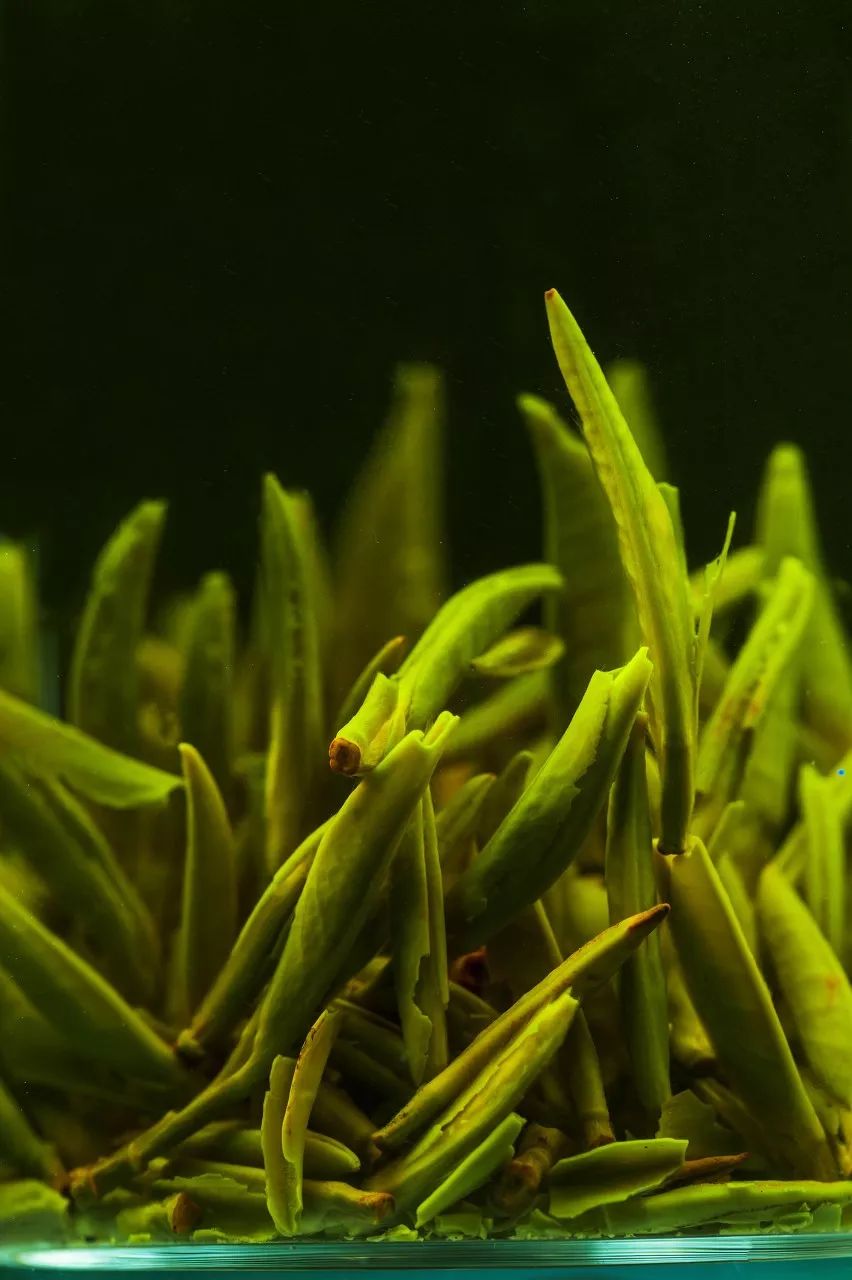 在世界所有茶叶中,六安瓜片是唯一无芽无梗的茶叶,由单片生叶制成。去芽不仅保持单片形体,且无青草味;梗在制作过程中已木质化,剔除后,可确保茶味浓而不苦,香而不涩。六安瓜片每逢谷雨前后十天之内采摘,采摘时取二、三叶,求“壮”不求“嫩”。