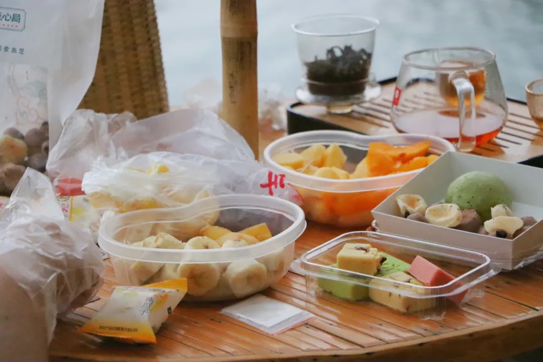 而在茶馆外靠湖的位置,多了些年轻的身影,于是,简单的茶点摇身一变「名媛下午茶」。