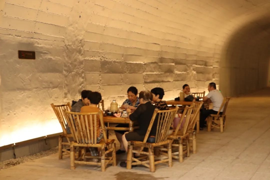 防空洞的几桌几乎都坐满了人。福州方言交杂在一块,五六七个人儿围成一桌,讨论着家长里短。