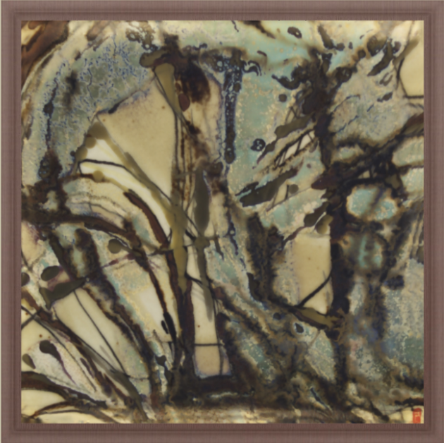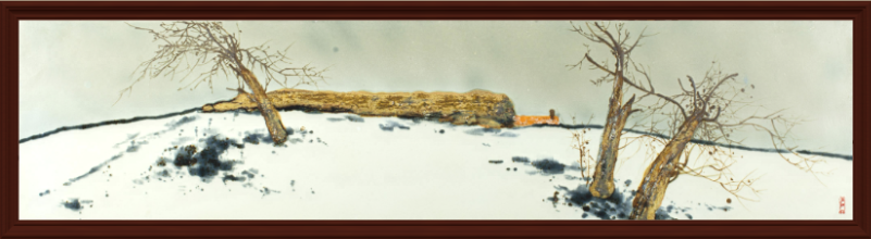 此高温颜色釉系列瓷板画的灵感来自东北写生。北方的冬天总是白雪皑皑。冻的化不开土地。古树在凛冽的寒风里屹立。茫茫的天空,好像总有一抹浓的吹不散的冷峻色彩。萧瑟又壮阔。北方的雪和南方的雪不一样,在田野,山坡间,除了白色就只有褐色。