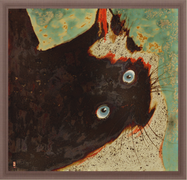 此系列瓷板画采用高温颜色釉创作,猫咪的好奇心非常强,它们对任何东西都具有新鲜感,喜欢玩耍是猫的天性。因家中养猫,捕捉到猫的灵动瞬间。