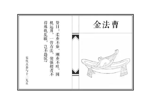 赞曰:首阳饿夫,毅谏于兵沸之时,方金鼎扬汤,能探其沸者几稀!子之清节,独以身试,非临难不顾者畴见尔。茶筅截竹为之,竺、竹同音,故以竺为姓。茶筅配合汤瓶点茶,用于击拂,故称副帅。茶筅于茶盏内击拂,调制茶汤,泛起众多茶沫,色泽如雪,细密如波涛,故名“善调”,字“希点”,号“雪涛公子”。《大观茶论·筅》:“茶筅以著竹老者为之,身欲厚重,筅欲疏劲,本欲壮而末必眇,当如剑瘠之状。盖身厚 重,则操之有力而易于运用;筅疏劲如剑瘠,则击拂虽过而浮沫不生。”12司职方——即茶巾,用以擦拭茶器具