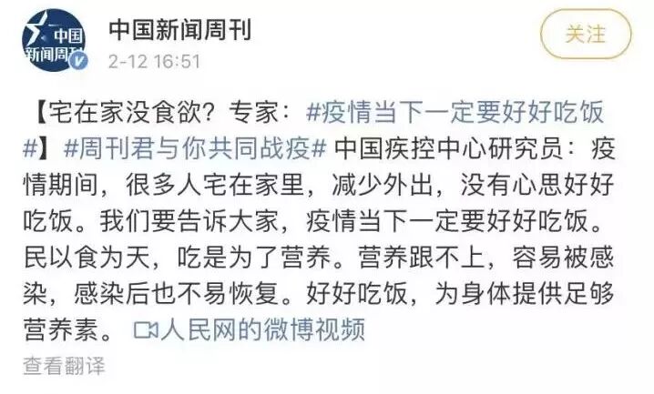 疾控中心的专家也说了:疫情当前,营养跟不上,就容易中招,感染后也不易恢复。好好吃饭,能够为身体提供足够的营养素。