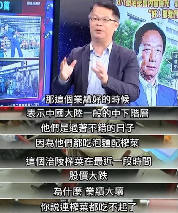 一直有台湾那边的人说我们大陆人吃不起榨菜,吃不起茶叶蛋,吃不起速冻水饺。连喝五粮液都是因为经济不景气,生活过得不好,就借酒消愁。