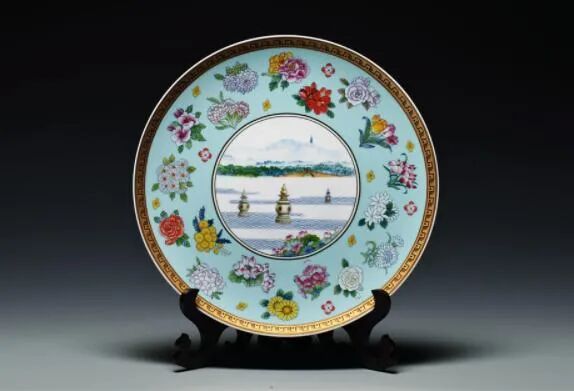 简老师回应道:“宋教授真的是好眼力!这只越窑青瓷盘《花开富贵》出自国家级非遗越窑青瓷烧制技艺代表性唯一传承人嵇锡贵之手。1975年中南海毛主席用瓷的设计制作,2016年“G20国宴瓷”的花面总设计师就是嵇锡贵大师。嵇大师曾经跟我的老师说,‘越窑青瓷72道工序一道也不能少。’嵇大师不仅传承了精湛的越窑青瓷烧造技艺,还创造性地摸索出了三个独创的手法:青花彩绘、陶瓷釉下综合,以及陶瓷釉上彩绘装饰,推陈出新,古为今用。”