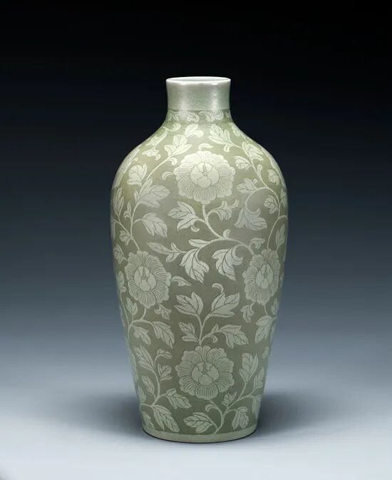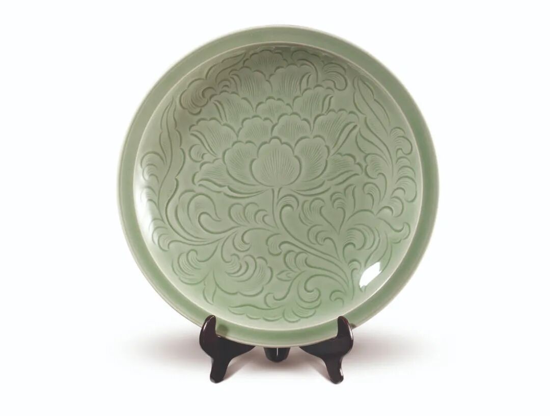 宋教授凝神聚气稳稳地将瓷盘端到眼前,细细观赏,频频点头,良久才慢慢地说:“越窑之名,最早见于唐代,陆羽在《茶经》中说,‘越瓷类玉,越瓷类冰’。这只青瓷刻花盘釉色自然素雅,精巧瑰丽,手法多样,浑然一体。尤其是这牡丹花,刀尖之下仍保持灵动,颇有宋代文人画之恬淡意境。这应该是出自一位功力深厚的大家之手啊!”。
