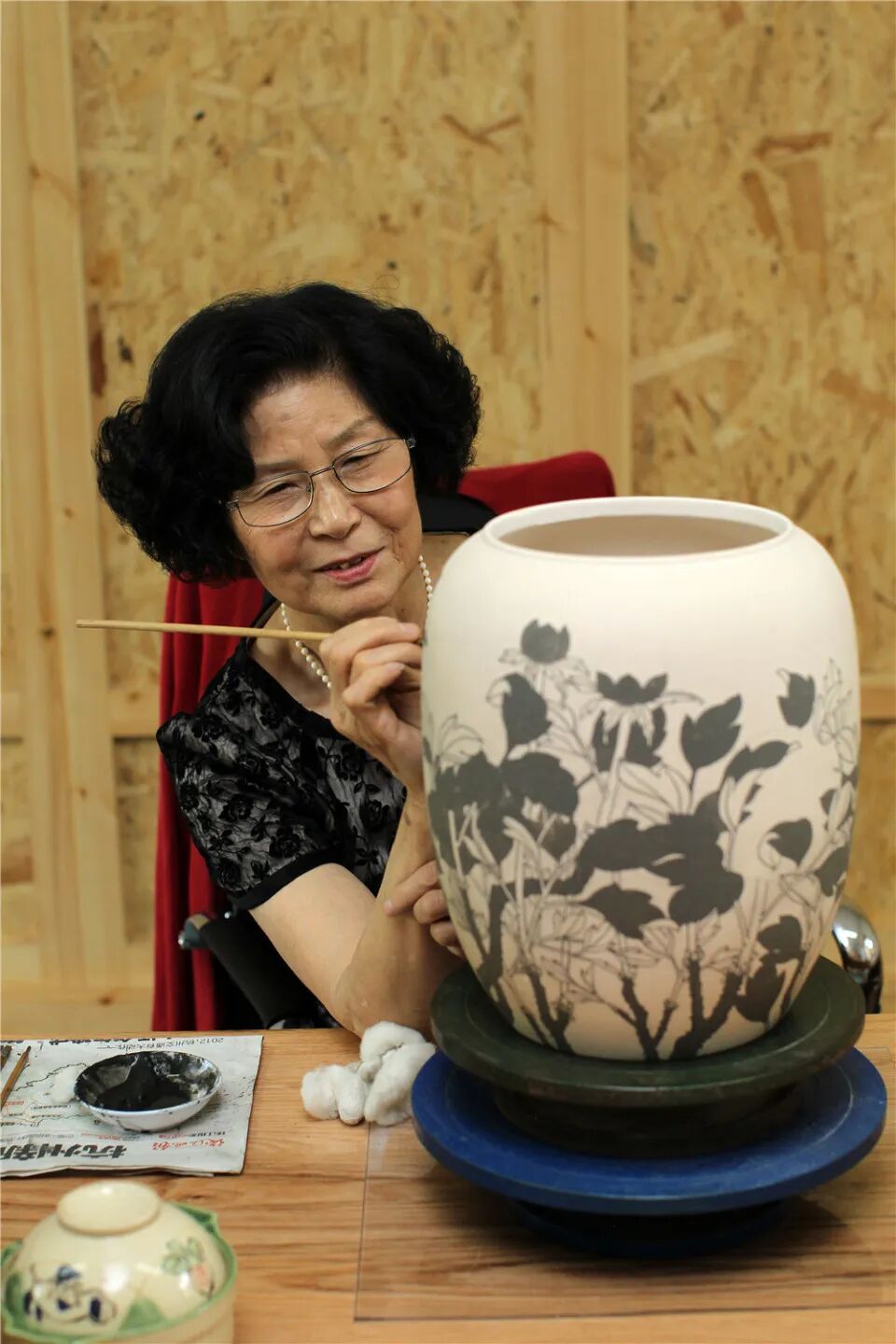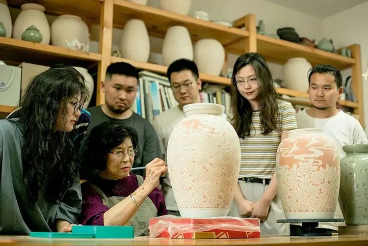 (越窑青瓷技艺传承人嵇锡贵和她的学生们)