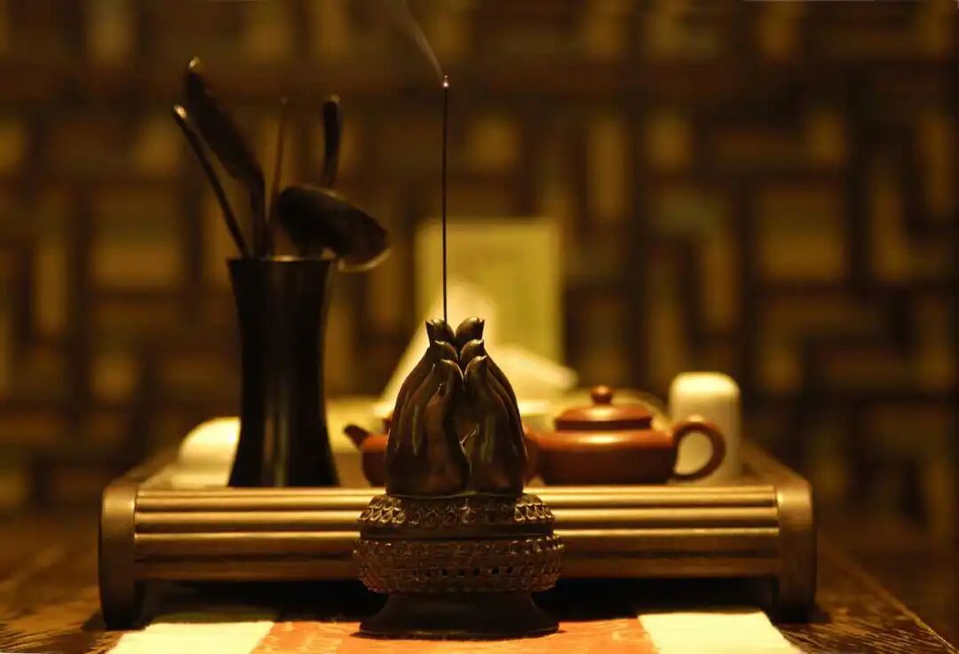 ”焚香静气”就是通过点燃这支香来营造一个祥和肃穆,无比温馨的气氛,希望这沁人心脾的幽香能使大家心旷神怡,并随着这悠悠袅袅的香烟升华到悟道的境界。