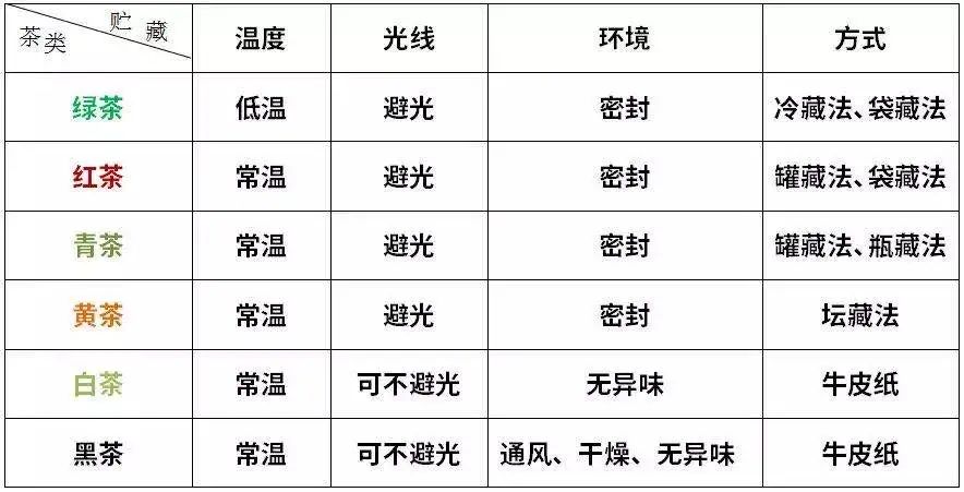 通常茶叶在贮放后,香气滋味多少会发生变化,但若同时在高温高湿、阳光照射下,则会在短时间内使茶叶陈化变质。六大茶类贮藏方法