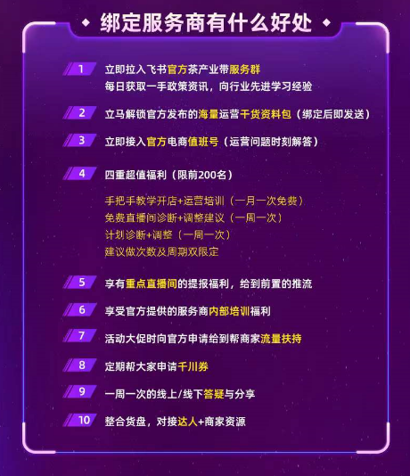 (5)提供10大专属赋能服务,为商家保驾护航