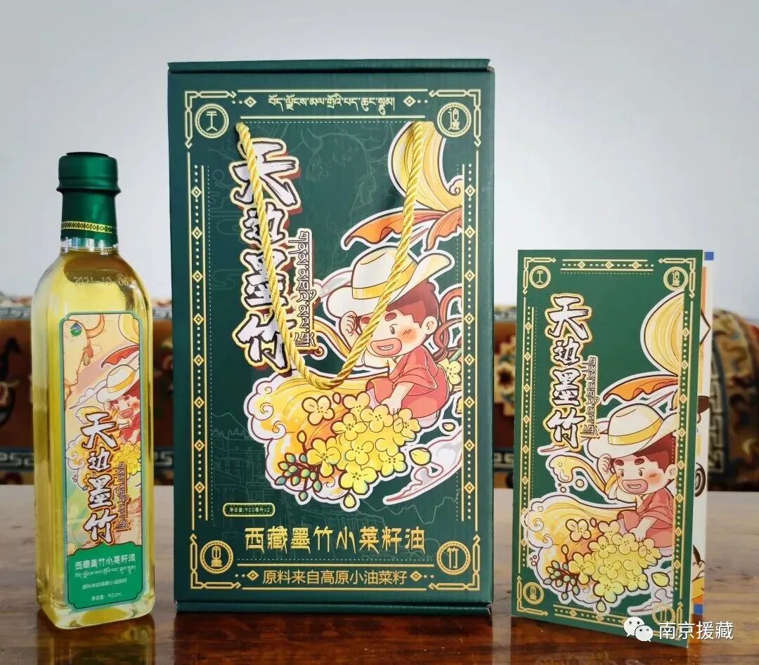 “墨竹小油菜籽”是国家地理标志证明商标。为了进一步挖掘墨竹小油菜价值,推动墨竹农业产业发展,南京市第九批援藏干部,实行“一产”扩大种植面积,年推广种植小油菜3万亩左右,年带动4000余户农牧民增收1000万元以上;“二产”增加小菜籽油加工生产能力,加大对墨竹榨油厂投入,提升小菜籽油品质;“三产”结合每年度举办的“墨竹金花节”,推广“天边墨竹”旅游名片,打造了墨竹工卡县“一桶油”特色品牌,成为拉萨市乡村振兴产业的一张名片。