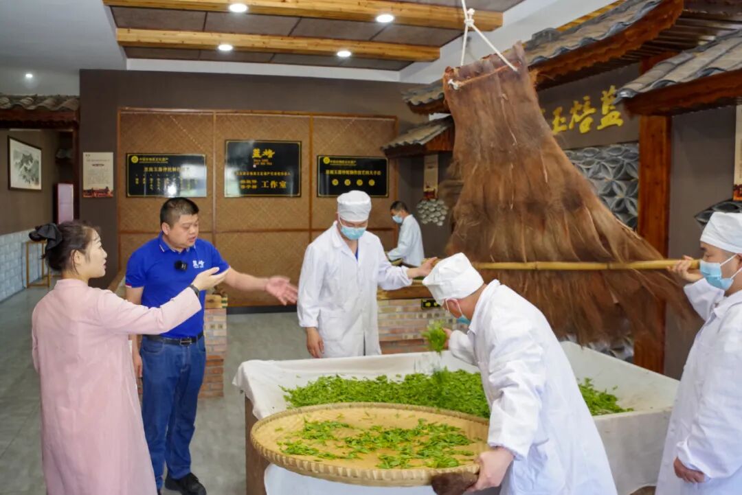 烂漫春光里,茶香绕山间。镜头下的蓝焙“恩施玉露”桃花园产区,山峦叠翠绿意环绕,茶韵悠远美不胜收。虽然过了明前雨后的采摘旺季,仍有村民们三三两两,在山间茶园采摘。走下茶山,在蒋子祥老师的带领下,大家走进蓝焙制茶车间,参观恩施玉露的蒸青工艺和制作流程。据介绍,恩施玉露富硒茶,是中国历史上保留下来的唯一一支蒸青针形绿茶。传承自1300年前唐朝茶叶制造的蒸青工艺,清朝康熙年间由蓝氏首创,其传统的手工制茶工艺,包含摊青、蒸青、搧干水气、炒头毛火、揉捻、铲二毛火、整形上光、焙火提香、拣选等9道工序,所制成的茶叶外形紧圆、坚挺、色绿、毫白如玉。恩施玉露传统制作技艺于2014年入列“国家级非物质文化遗产名录”。