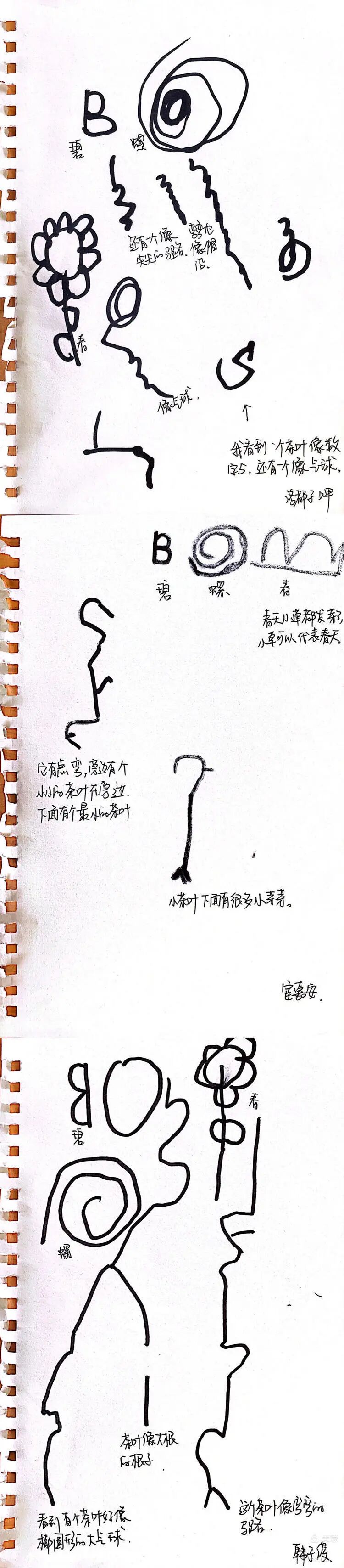 孩子们还用英文字母B、螺旋线、小花或小草来表示碧螺春的名字。
