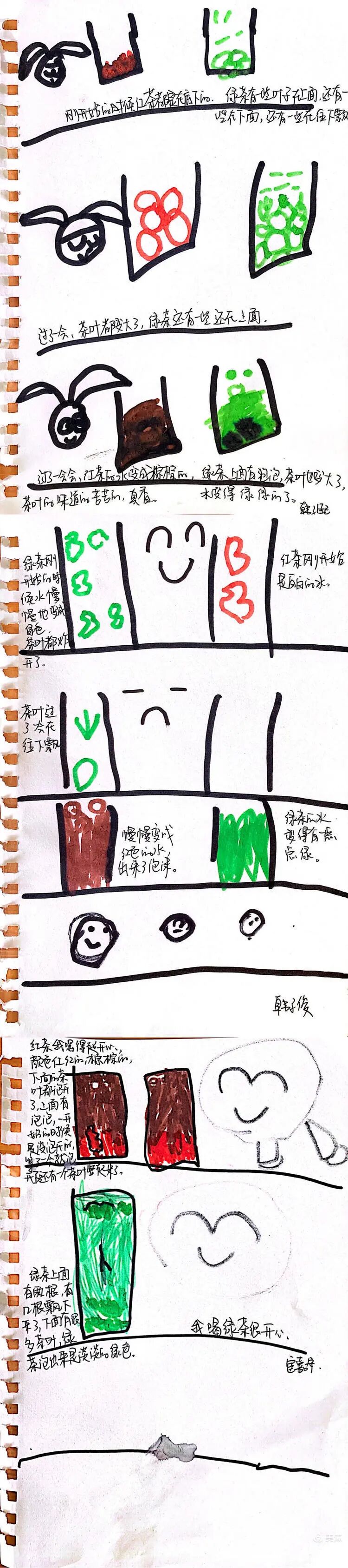 在《悠悠茶香》的课程中,孩子们对家乡的茶叶展开了讨论,开展了解茶叶的种类、家乡的特产碧螺春、品碧螺春、了解茶文化、设计小茶壶等活动。