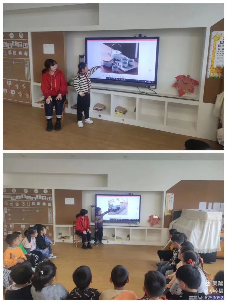 当孩子们看到视频中各种各样的茶壶、茶杯时,都发出感叹表示茶壶、茶杯真好看。