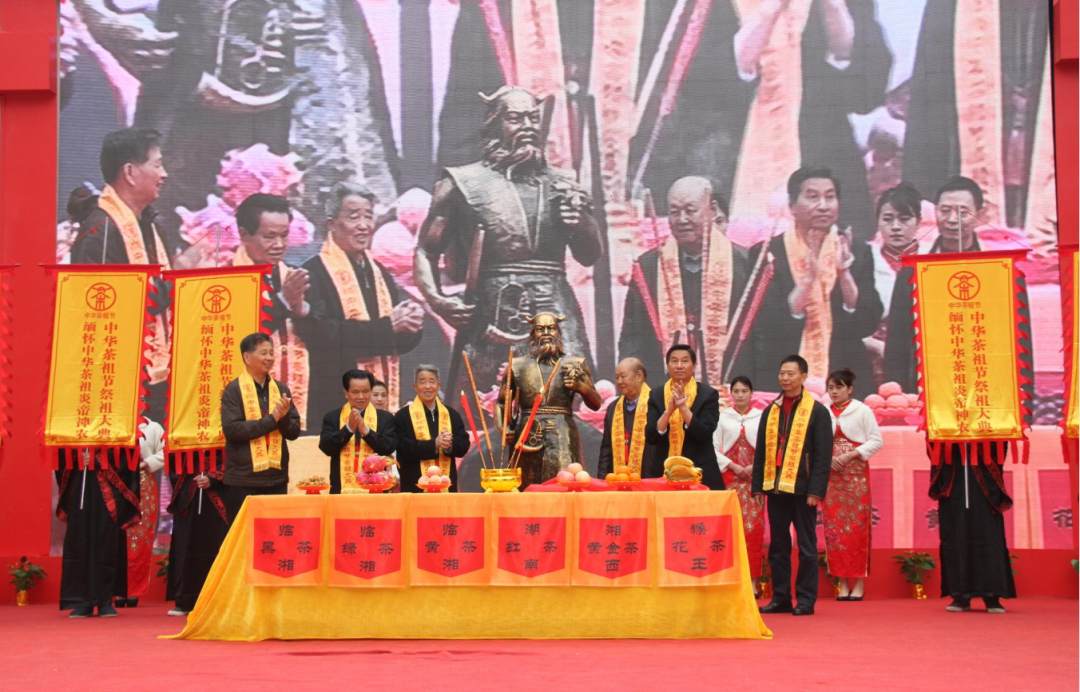 2011年中华茶祖节庆典暨百万爱茶人共品三湘茶2011年4月20日,由中华茶人联谊会、省农办、省供销合作总社、省茶业协会、茶祖神农基金会、湖南中茶茶业公司等共同举办的2011年中华茶祖节庆典暨百万爱茶人共品三湘茶活动在长沙启动。庆典现场,湖南中茶茶业公司举行的安化中茶·黑茶园品鉴会,吸引了广大市民争相品饮、购买,全省各地的茶馆、茶企也都设立了品茶点,迎接百万爱茶人共品三湘名茶。庆典仪式上,省内茶界发表了《湖南茶业安全诚信宣言》,承诺“严格遵守商业道德,生产销售优质、安全的茶产品”,并呼吁把中华茶祖节上升为全民节日,缅怀中华茶叶始祖神农。启动仪式后还将举行中国黄茶(岳阳)高峰论坛暨产品展示、茶祖故里株洲市系列茶文化活动暨“十二五”茶叶发展论坛、中国(古丈)首届茶文化节暨古丈毛尖万人品评会、南岳烟霞茶院品茗思祖颂寿等系列活动。
