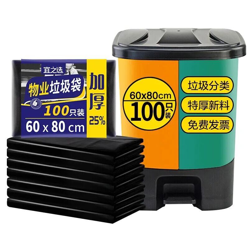 宜之选超特大号垃圾袋6080cm100只加厚黑色平口塑料袋商用物业酒店环卫干湿分类特大垃圾桶袋¥24.6到手价评论点击立即购买京东购物