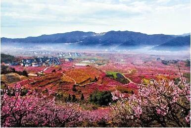 醉美缑乡三月天,寻芳觅韵向谁边?半城男女在东山。 人面桃花争暖意,春风丝雨润心田。桃园真个是桃源。