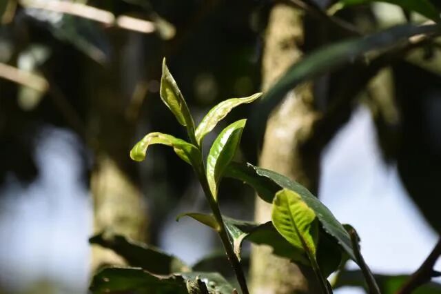 景迈山一直保持着原始森林的生态环境,茶树主要以百年的古茶树为主。且古茶树没有经过人为矮化,一个人环抱不过来的古树比比皆是,大部分茶叶需要攀爬才可以采摘到。