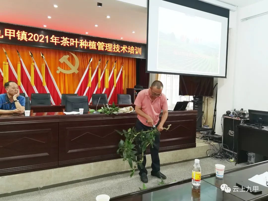 培训邀请了普洱市茶叶科学研究所高级农艺师陶仕科到会授课。授课老师结合九甲实际,围绕九甲镇古茶树、老树茶园多等情况进行了《仿古茶园改造与管理实用技术》培训,针对九甲老树茶园除草及病虫害防治、无公害茶园管理技术、茶叶采收标准、茶树嫁接及新茶园标准化建设等方面进行了全面细致的讲解,并对如何进行茶树的嫁接进行了现场演示。