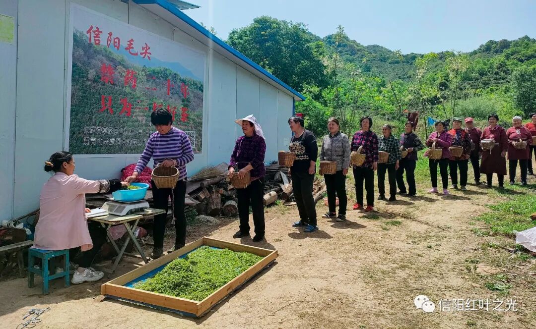 怎样让震雷山的茶叶走出信阳,走向全国。采访中,我认识了一位老实憨厚、地地道道的80后震雷山老虎村人,他叫周海涛,郑州牧专毕业,大三时入的党。他家的茶场位于老虎村老虎山海拔300多米的茶山上,面积有四五百亩。茶场是他2006年承包了村里的。16年来,他宁肯茶园产量低一点,也坚持不施化肥,不打农药。为的是维护震雷山茶叶品牌,让顾客喝到真正的放心茶,原生态茶。2020年,他在郑州市金水区唐人街茶城注册成立河南香草堂茶叶有限公司,年销售信阳毛尖万余斤。采茶时节,他请两位师傅炒茶,他母亲在山上负责采茶,他父亲负责搞后勤,他是茶山和炒茶房两头忙碌。来他家的采茶工他都管吃管住,每采一斤55元,50多名采茶工天天有肉吃,都夸老板是实在人。我看到,他家的茶叶毫毛多,茶条紧,茶形细圆又很直。汤清,色浓,味清香,是上好的毛尖茶。周海涛向我介绍了他的信阳毛尖的炒制工序:摊晾-筛分-杀青-风选-回软-揉捻-理条-熟锅抓条-烘焙-色选机挑拣-最后是包装。这11道工序忙下来,往往炒茶到夜晚两三点,很是辛苦。此时,我对河南日报驻信阳记者站站长胡巨成先生曾撰文说茶叶不是树叶子,深有同感。每一粒茶叶,都是茶农用辛勤的汗水换来的。【原创图片 版权所有 擅用必究】