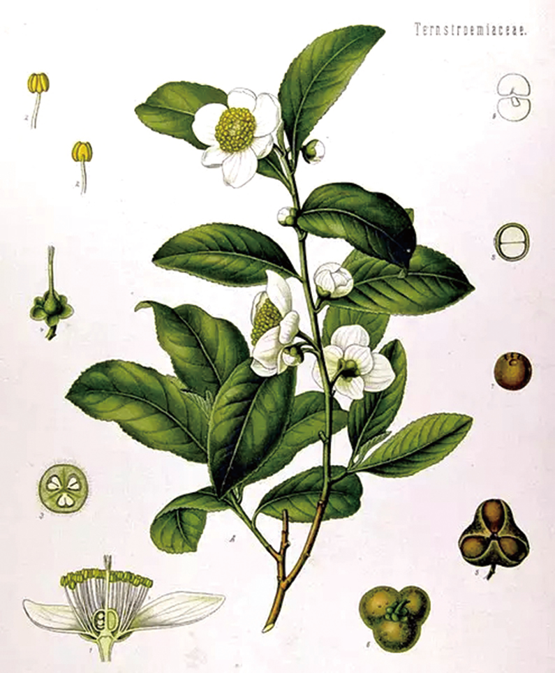 1897年德国出版的《科勒药用植物》一书中的茶树图例,对其生物学特性进行了细致的描绘