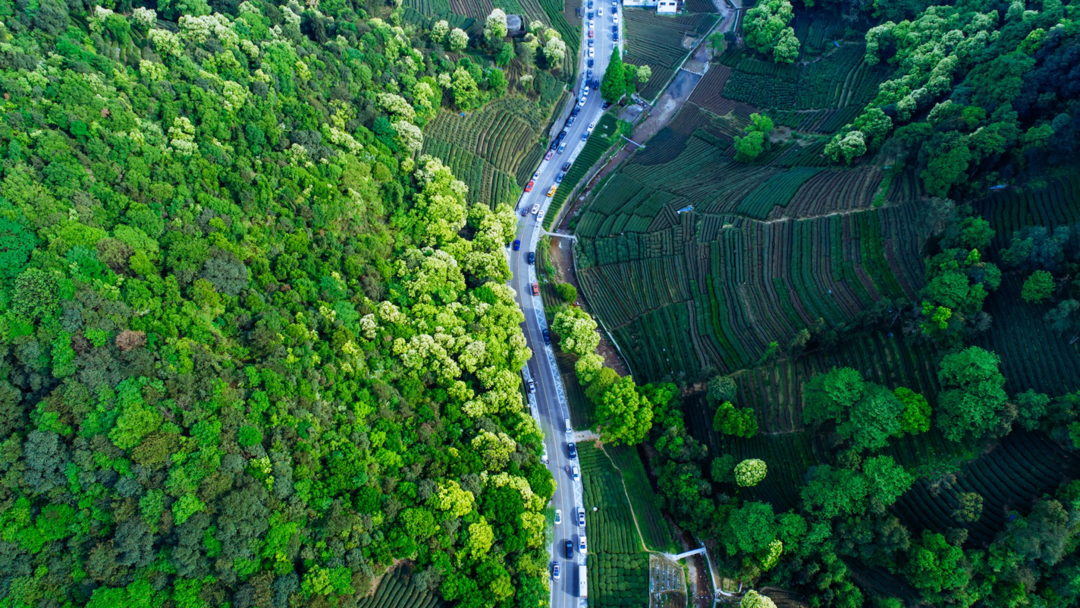至南北朝,南方地区被进一步垦殖开发,茶树的种植面积不断扩大,西南、长江中下游地区都相继成为茶的领地(图为航拍杭州梅家坞茶园)