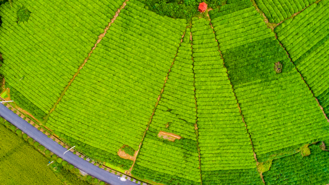 平原地区的茶园,连片茶园,从“上帝的视角”来看,非常壮观