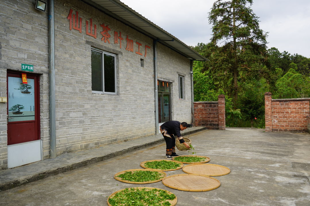 我早上7点半就过来茶场帮忙采摘茶叶,工作到下午6点左右,每天能采摘60至70斤茶叶,收入200元。同时,家里也种有3亩左右的茶叶,由这里的老板提供茶种和技术,并统一收购茶青,这样我就有两份工资收入,既可以可以补贴家用,又能方便照顾家庭。