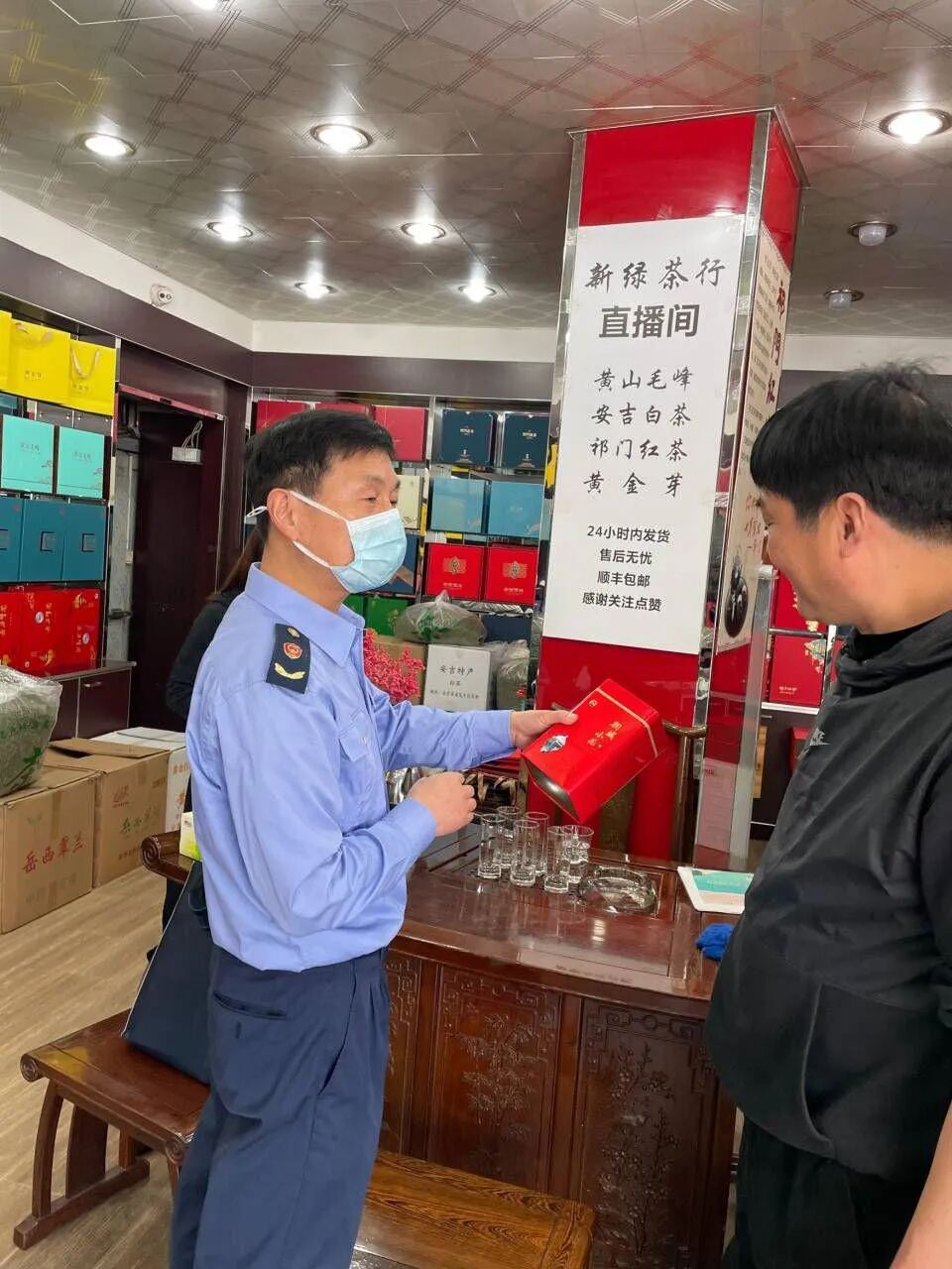 望江县市场监管局、太湖县市场监管局以全县茶叶经营者、超市等为重点,检查其销售的茶叶进货来源、索证索票、茶叶包装盒等情况,查看是否存在擅自使用或伪造春茶地理标志名称及专用标志行为;是否存在侵犯春茶地理标志注册商标专用权行为。