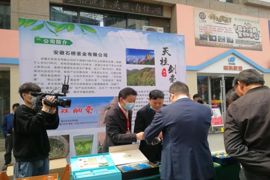 潜山市市场监管局组织天柱剑毫参加启动仪式展示,对茶叶产品图片、实物进行现场解说。