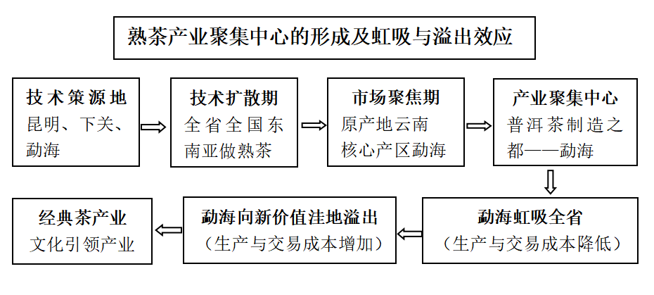 4、熟茶技术策源地、技术扩散与原产地、核心产区、产业聚集中心的传递过程: