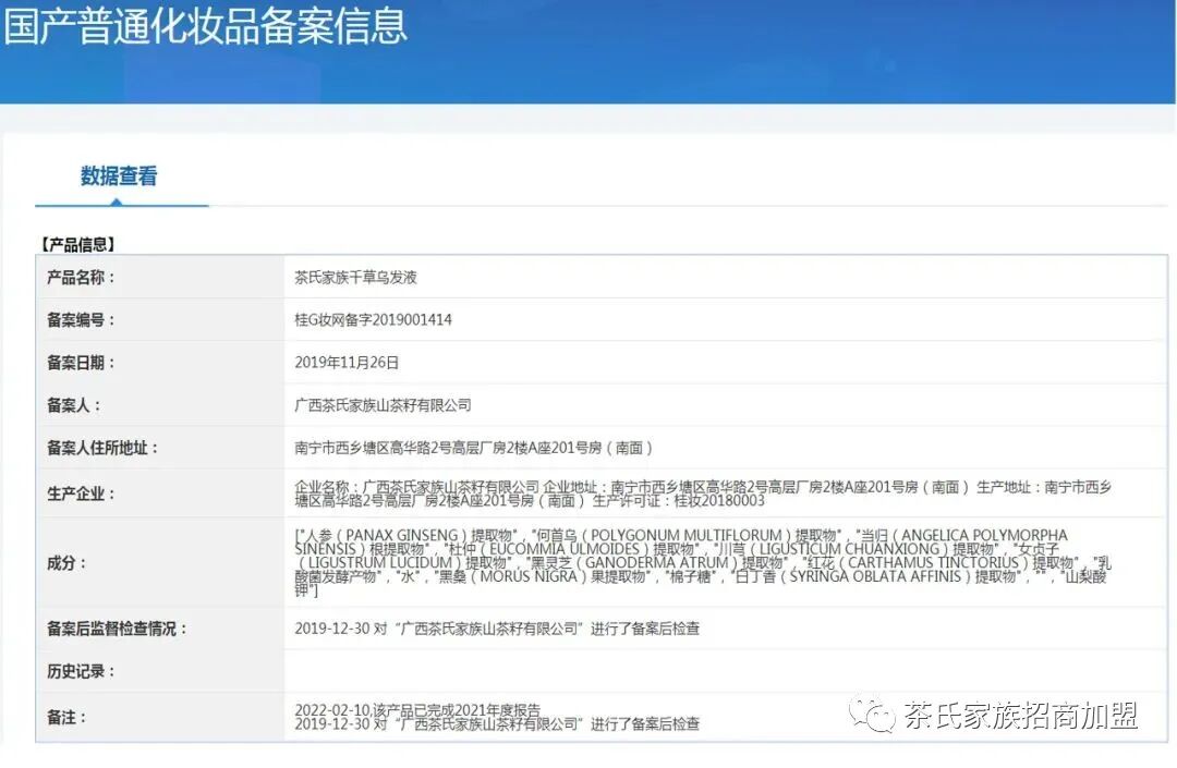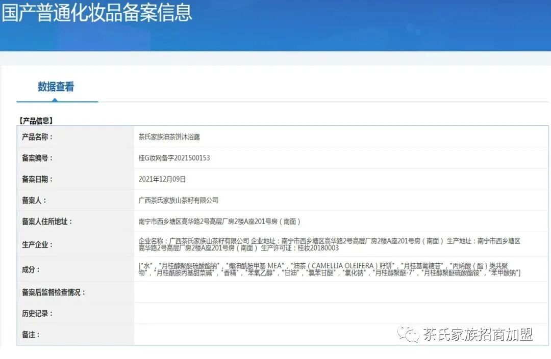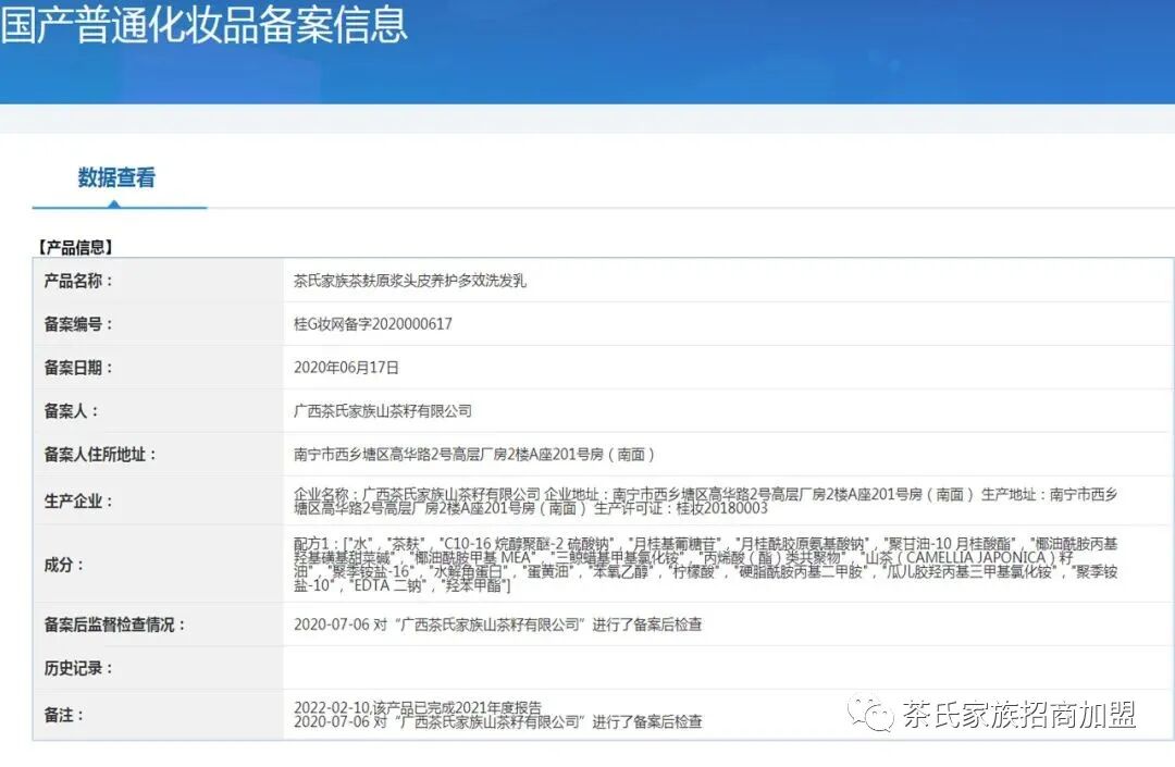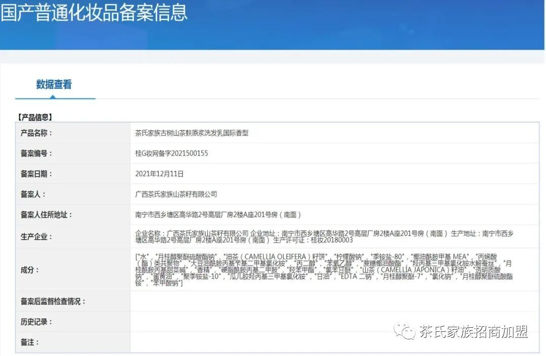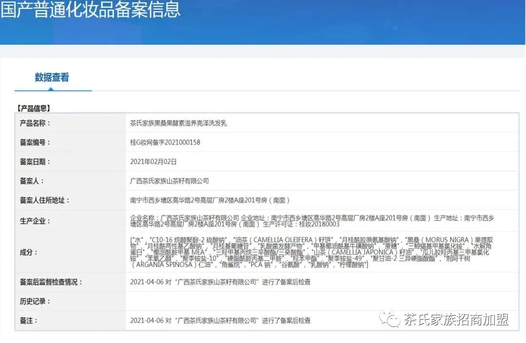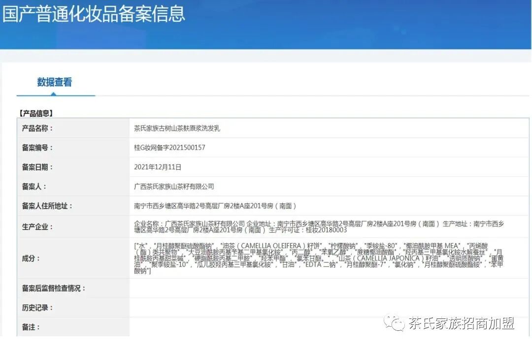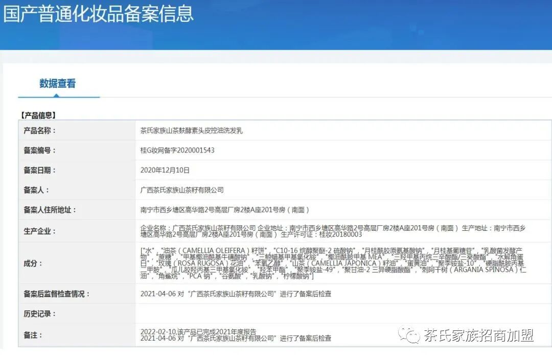 山茶麸酵素头皮控油洗发乳版产品备案号