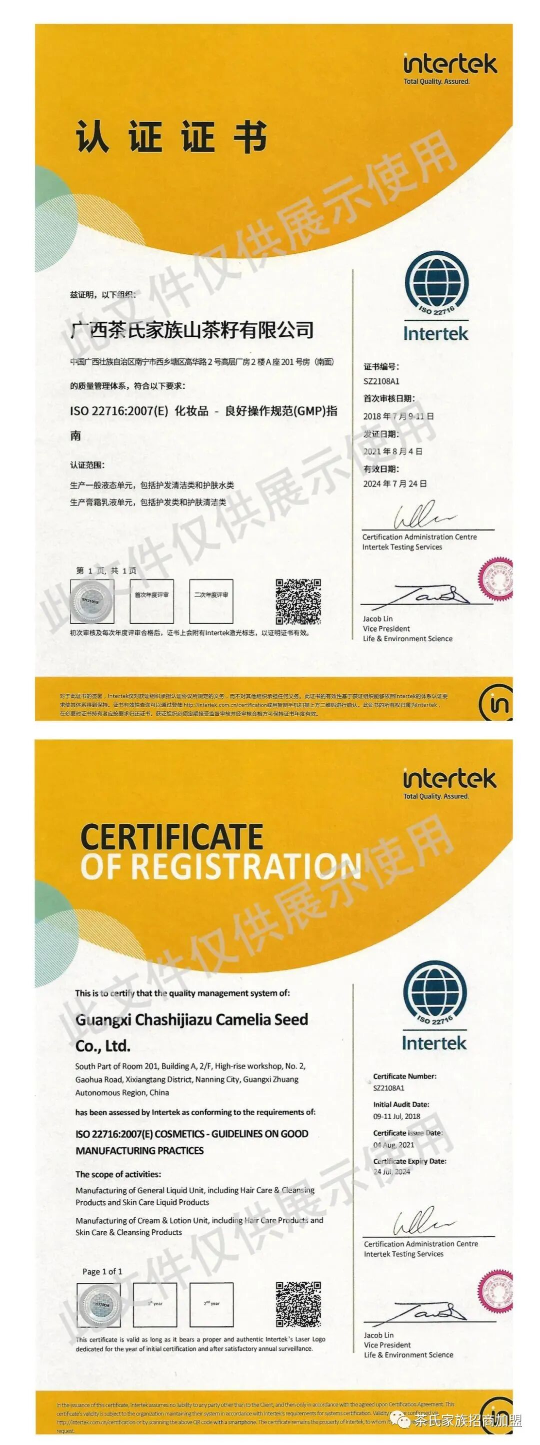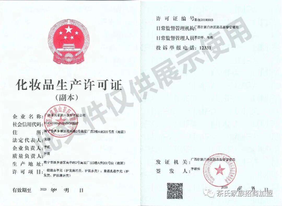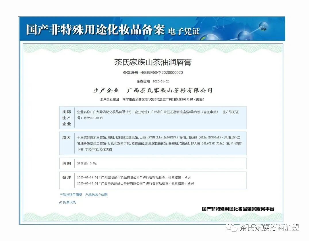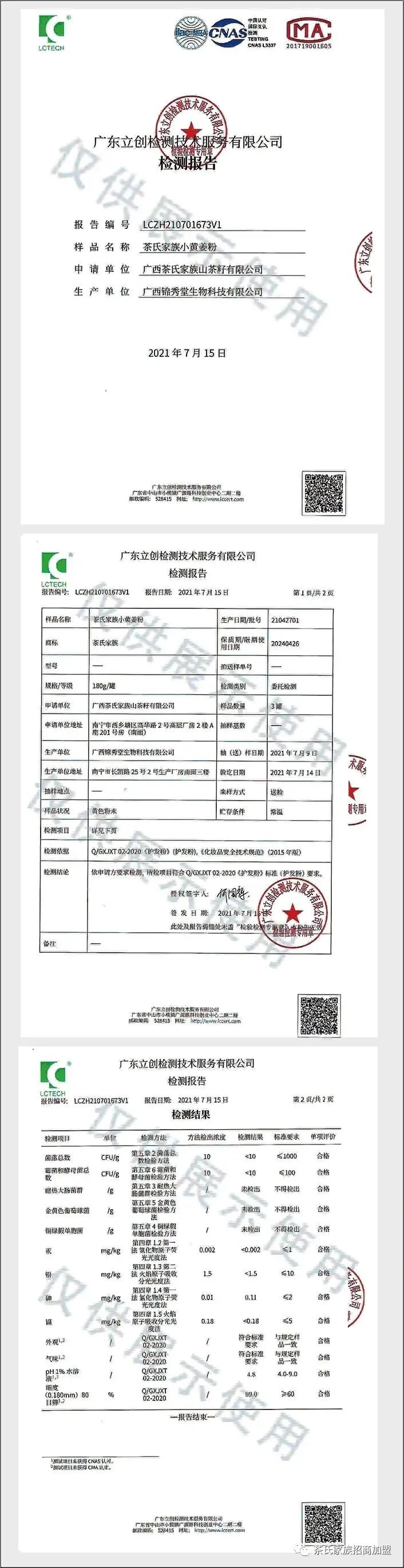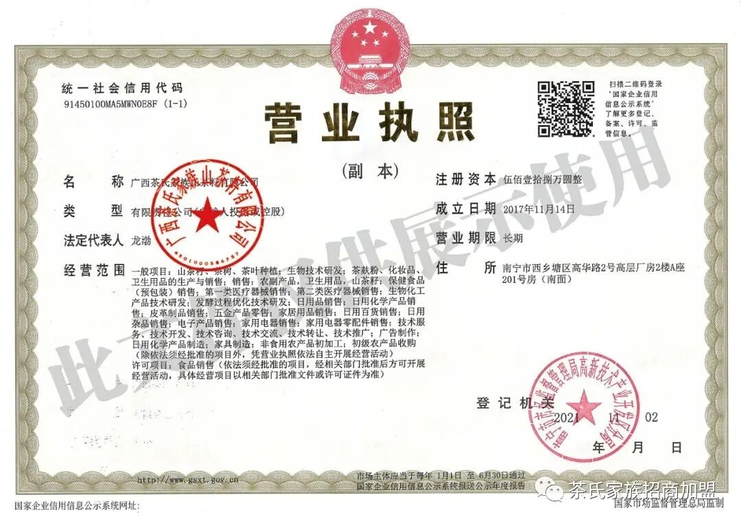下面的是广西茶氏家族山茶籽有限公司产品和所有的证件