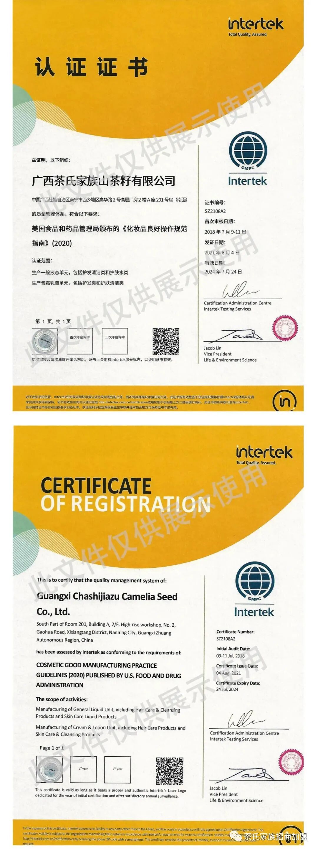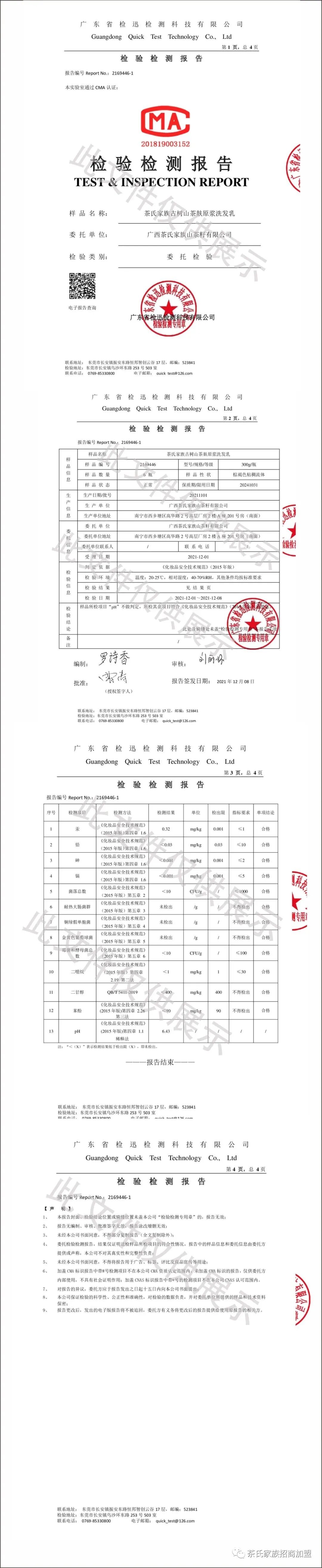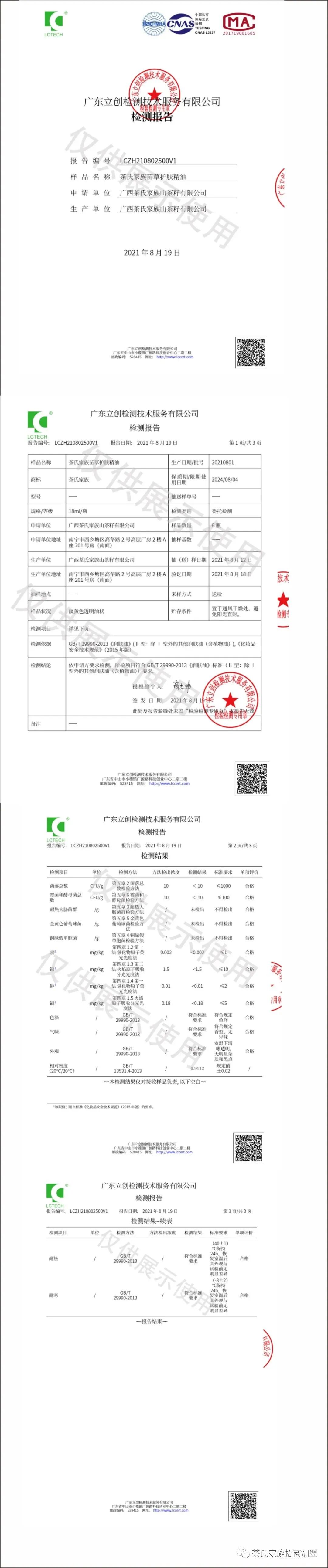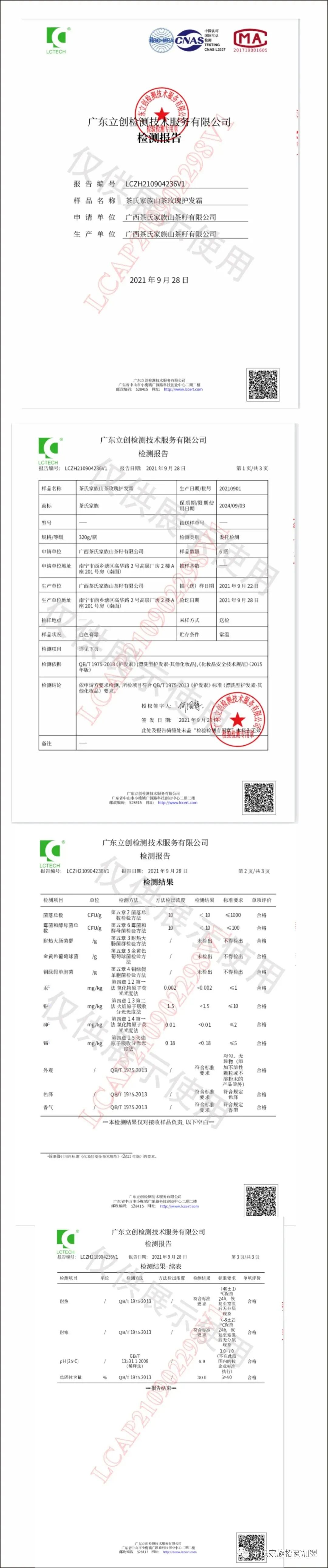 下面的是广西茶氏家族山茶籽有限公司产品和所有的证件