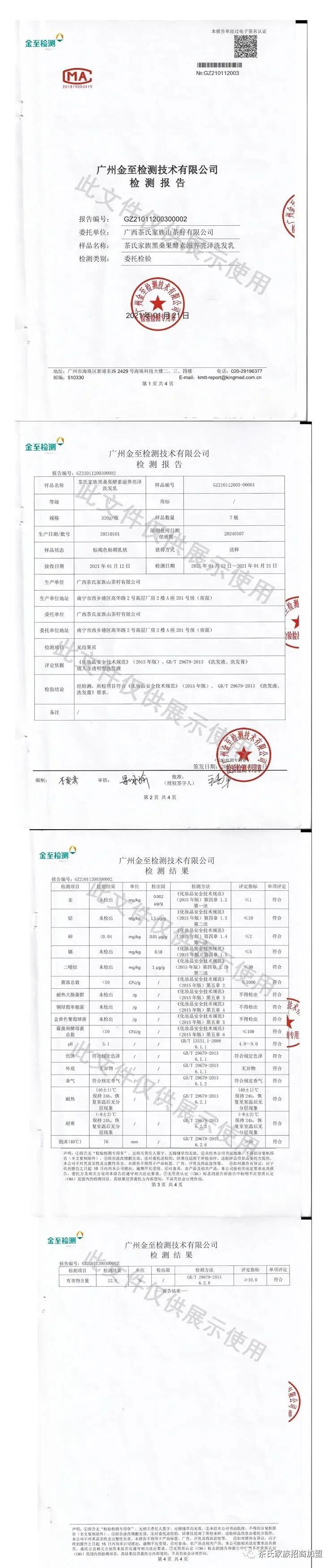 黑桑果酵素滋养亮泽洗发乳检验报告