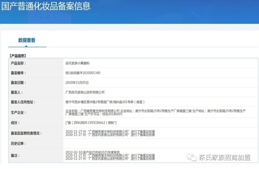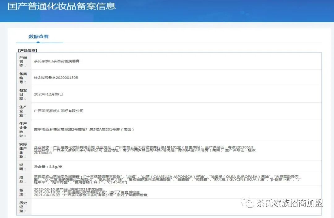 广西茶氏家族山茶油有限公司产品的证件,2022424更新