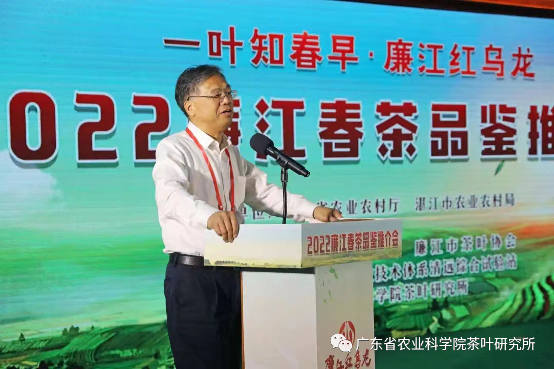 国家茶叶产业技术体系清远综合试验站站长、我所副所长操君喜研究员出席活动并在推介会上讲话。他指出,茶产业发展的新时代,要推动廉江茶产业的高质量发展和打响“廉江红·乌龙”品牌,关键在于要坚持“特色、生态、健康、高效”发展定位:一是要选育支撑廉江红·乌龙茶发展的特色品种,打造品质卓越的特色产品--廉江红·乌龙茶;二是要创建南亚热带特色生态茶园模式,做具有生态优势、生态品质的放心茶;三是通过培育百年茶企、几代茶人,探索建立“廉江红·乌龙”“1+N+X”产业化模式,研发出具有健康保健功效的茶产品等方式,推动廉江红·乌龙茶产业持续健康发展;四是以打造廉江红·乌龙茶产品金字塔结构为主线,充分利用沿海地理气候条件优势,结合生态茶园建设,间种经济苗木提高茶园和土地的综合产出效益。