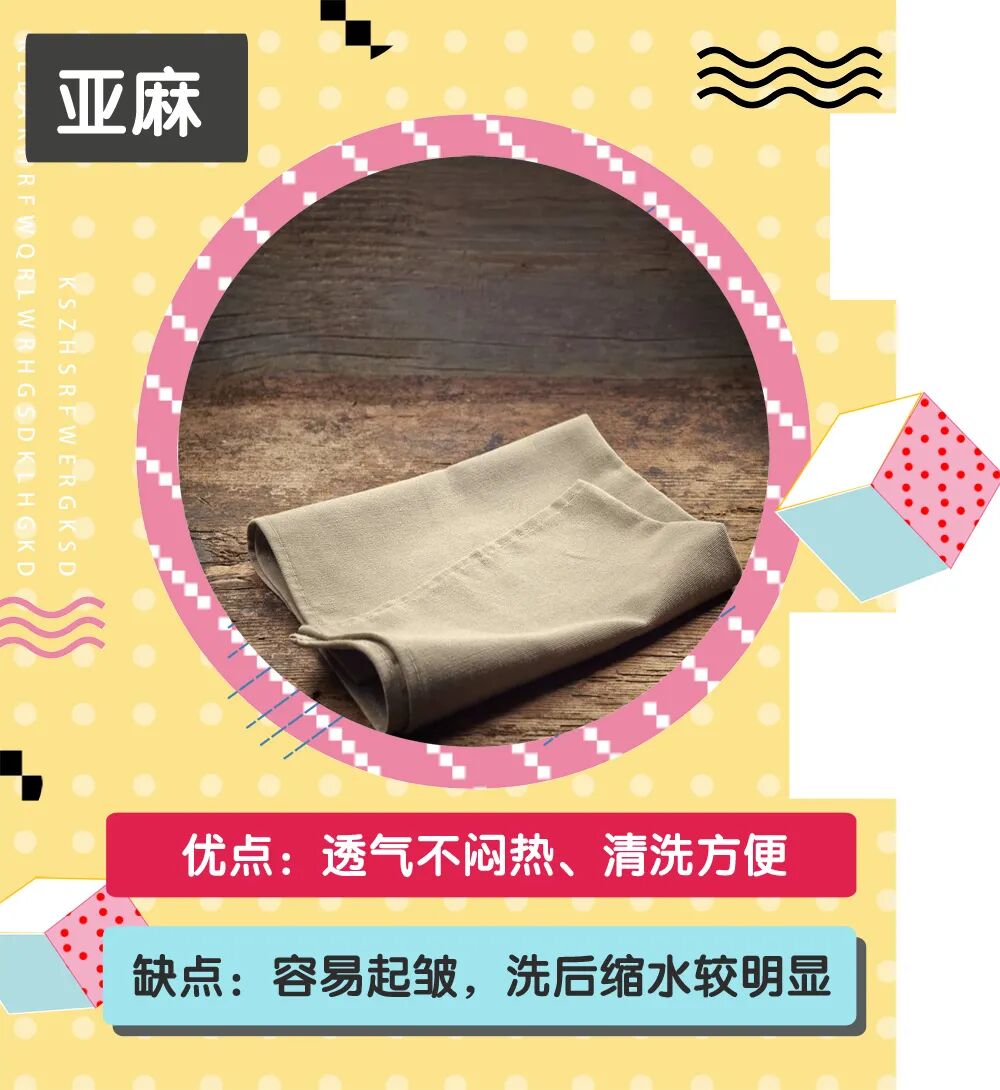 亚麻:优点:透气不闷热、易收纳、清洗方便,