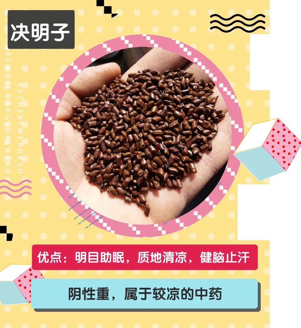决明子:决明子明目助眠,祛风除湿,健脑止汗。其种子坚硬,又可对头部和颈部穴位进行按摩,它具有夏凉特点,夏天利用决明子做枕头睡着尤其舒适。