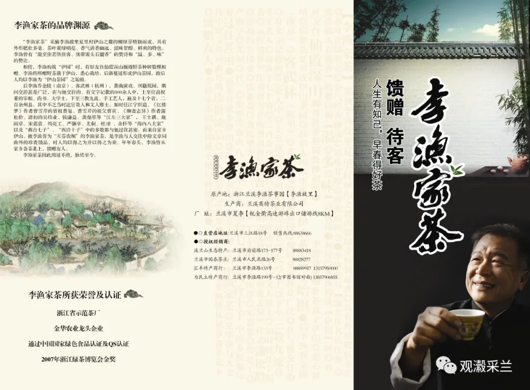 姚水滨在旁征博引、兼容并收的基础上,充分开发利用“李渔真茶客”这一文化资源,把兰溪的茶产业与李渔文化有机结合起来,创建了具有兰溪特色和深厚文化底蕴的“李渔家茶”品牌。