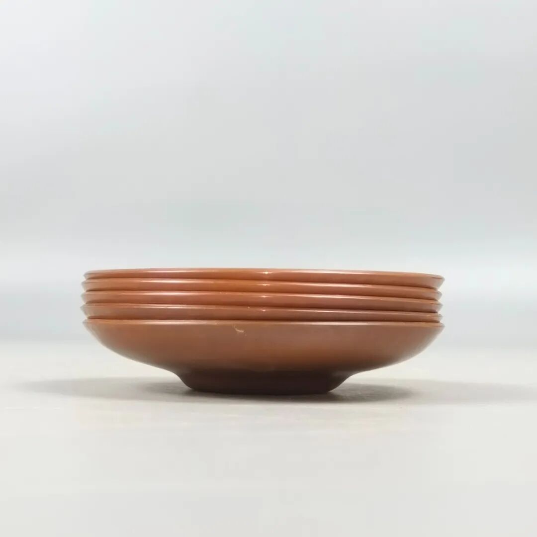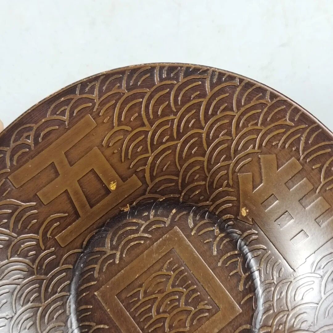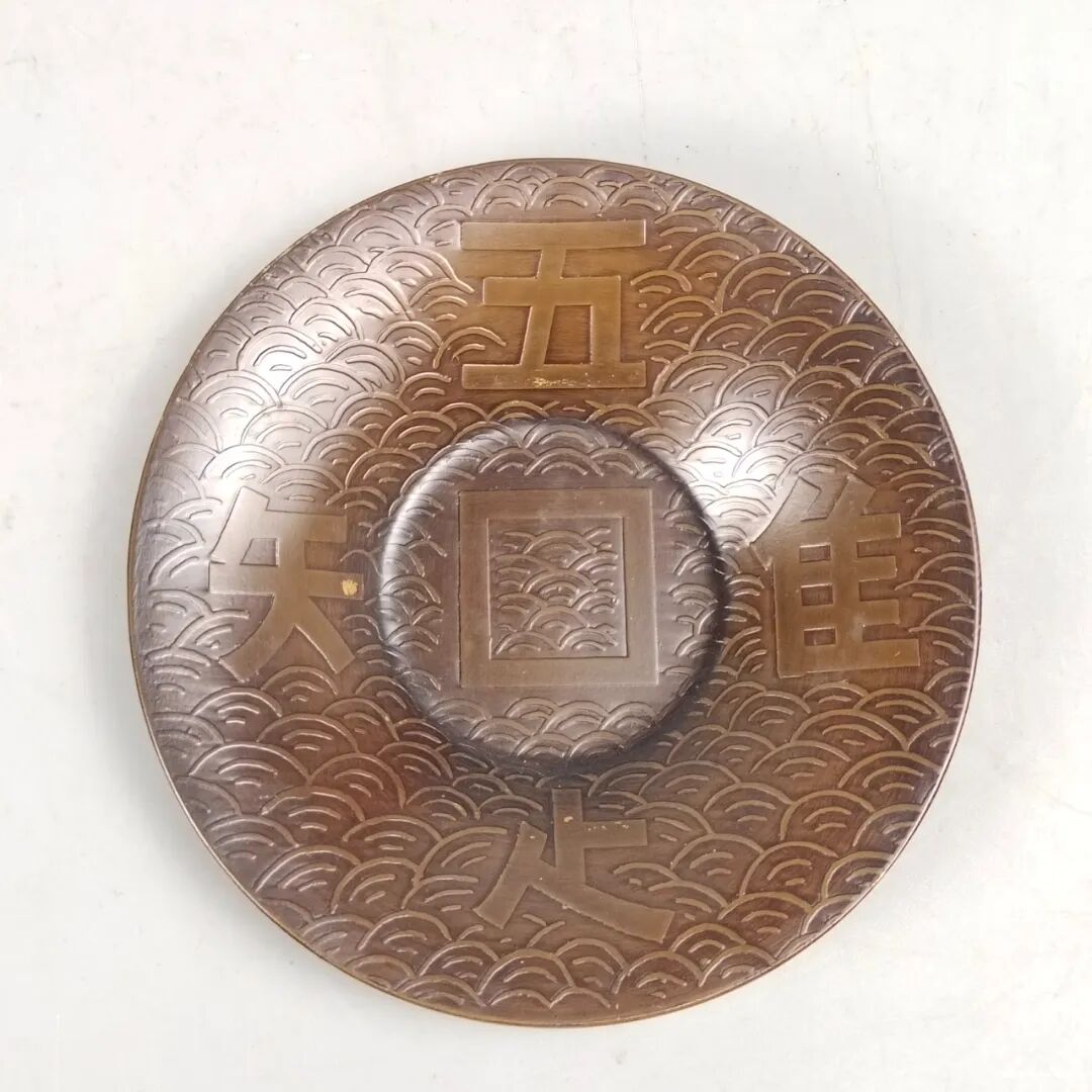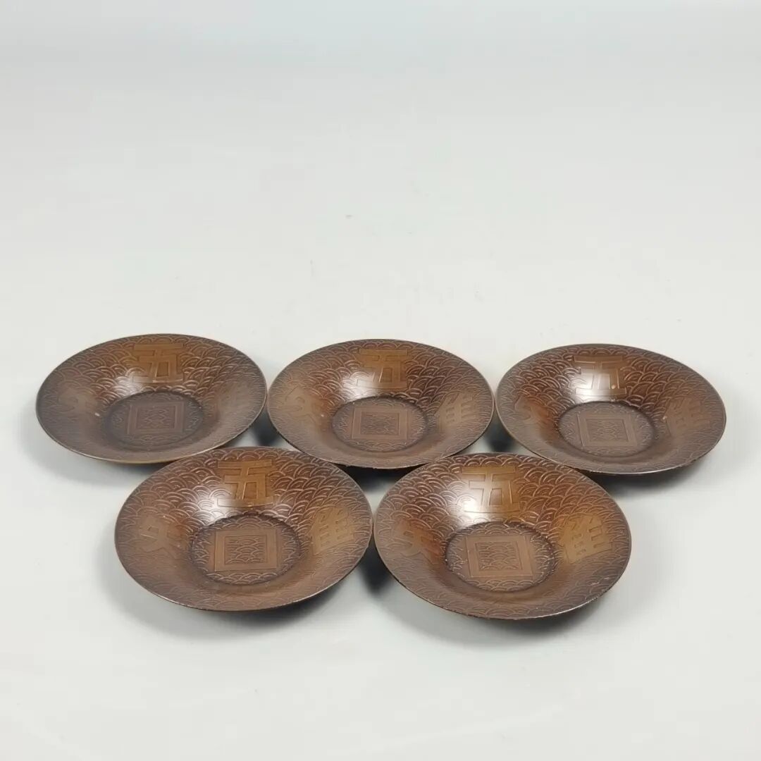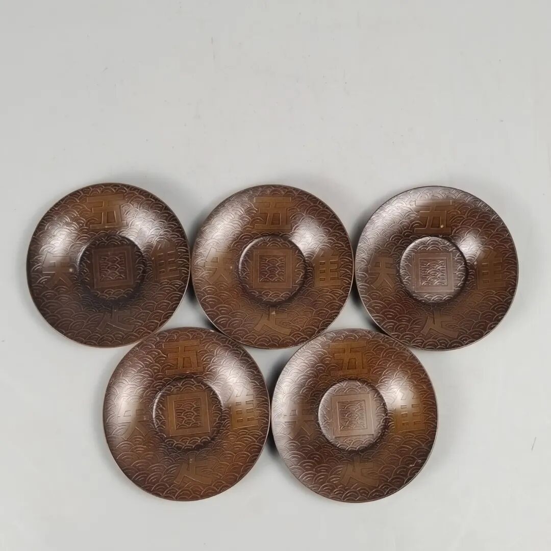 胜彦作唯吾知足文日本铜茶托一套5个。