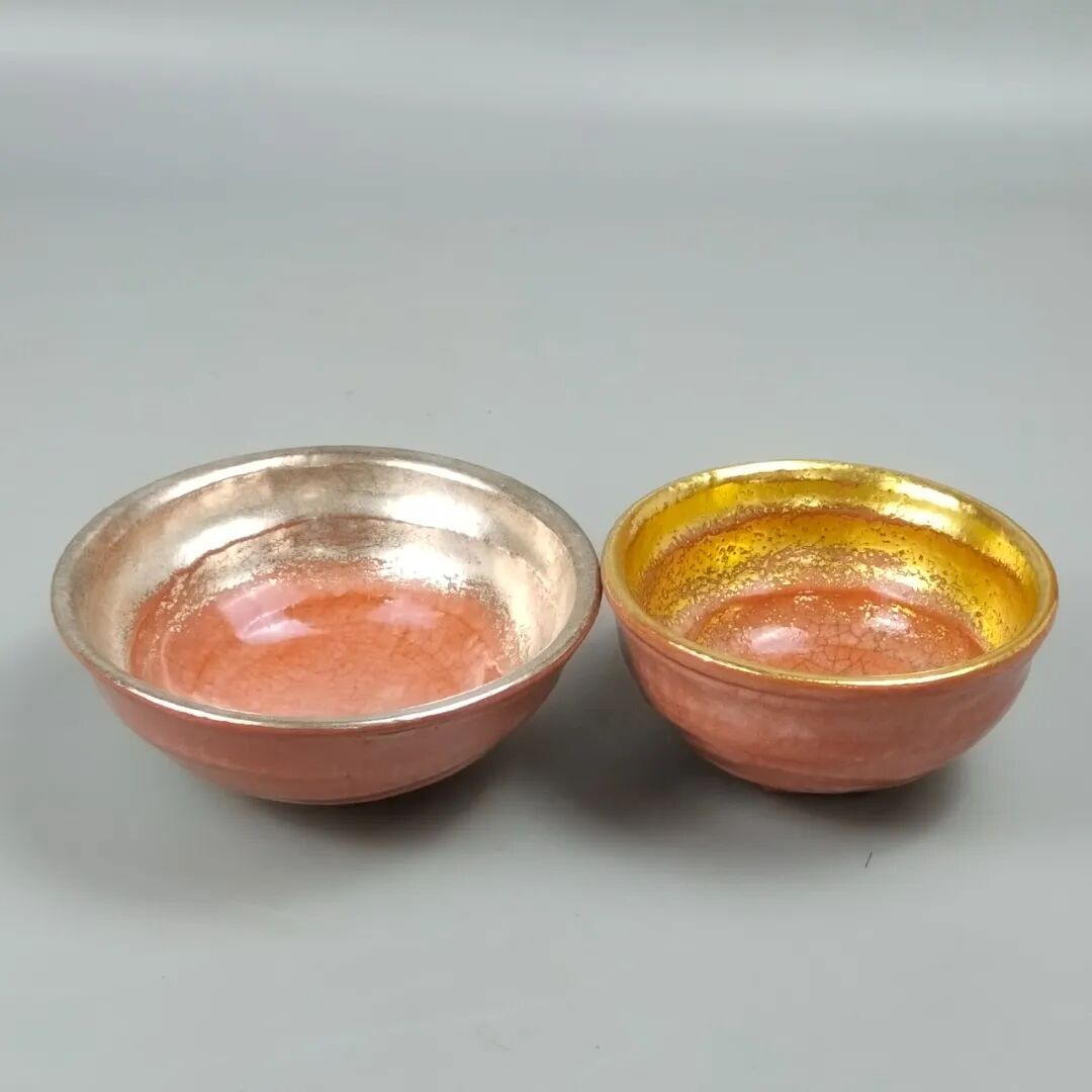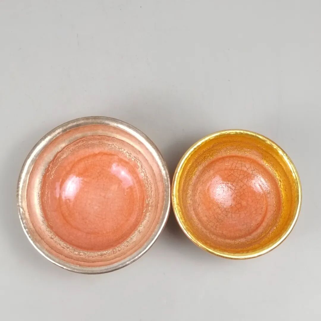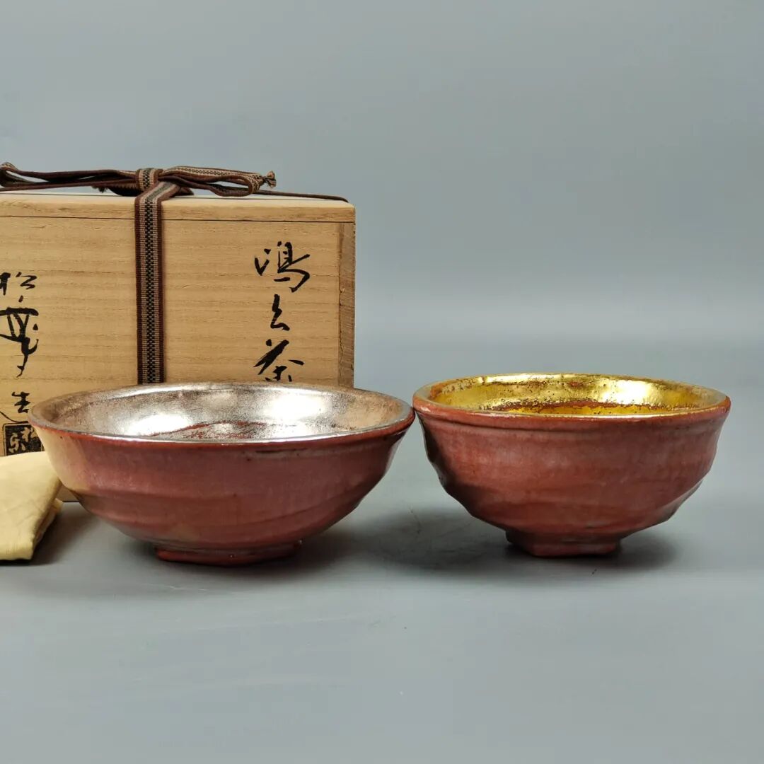 日本赤乐烧金银抹茶碗。未使用品带原箱。#97