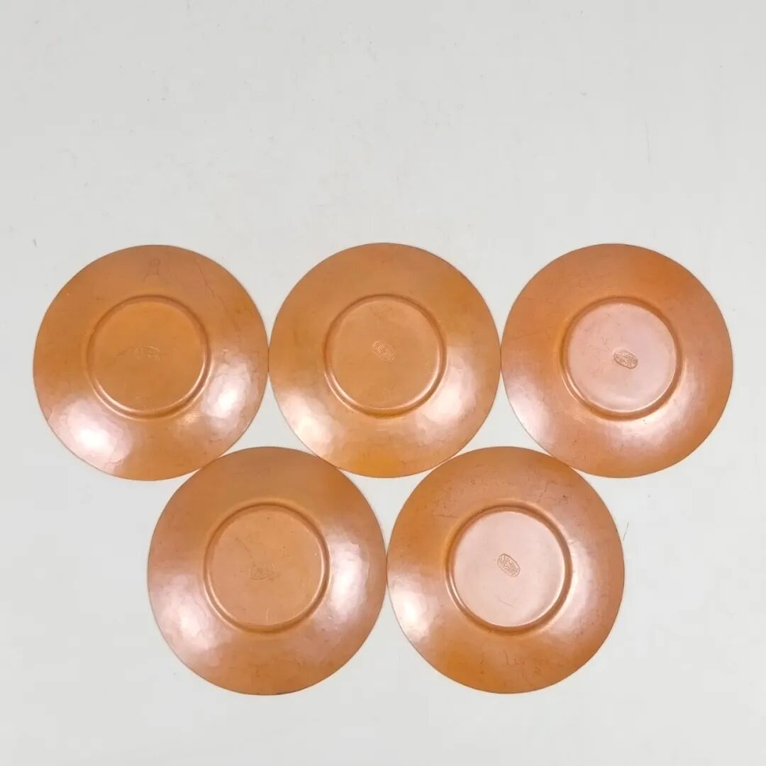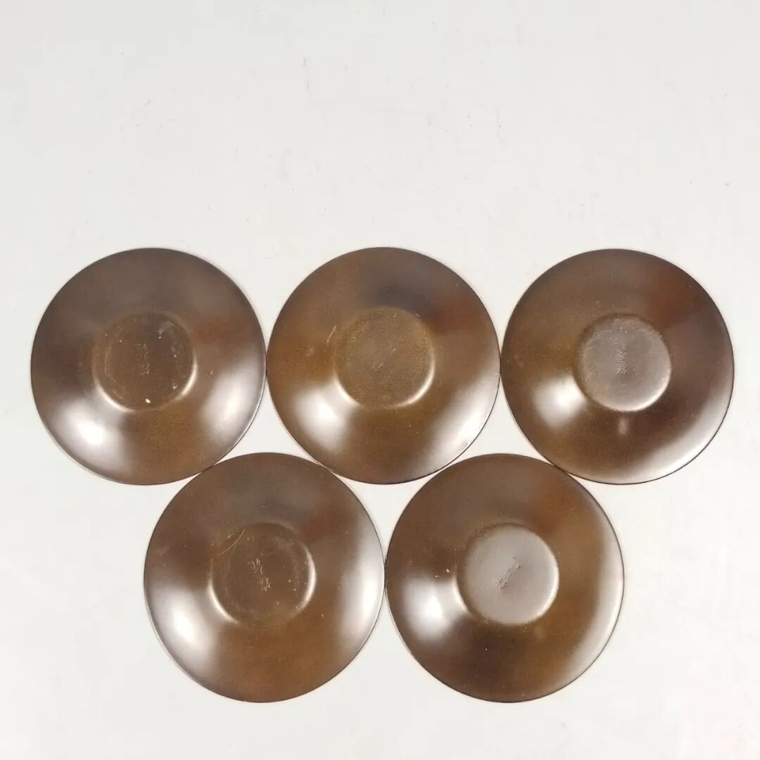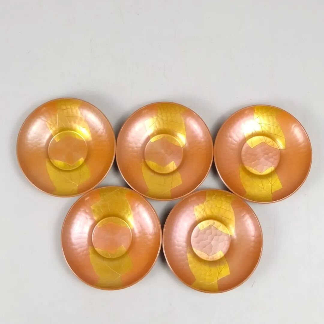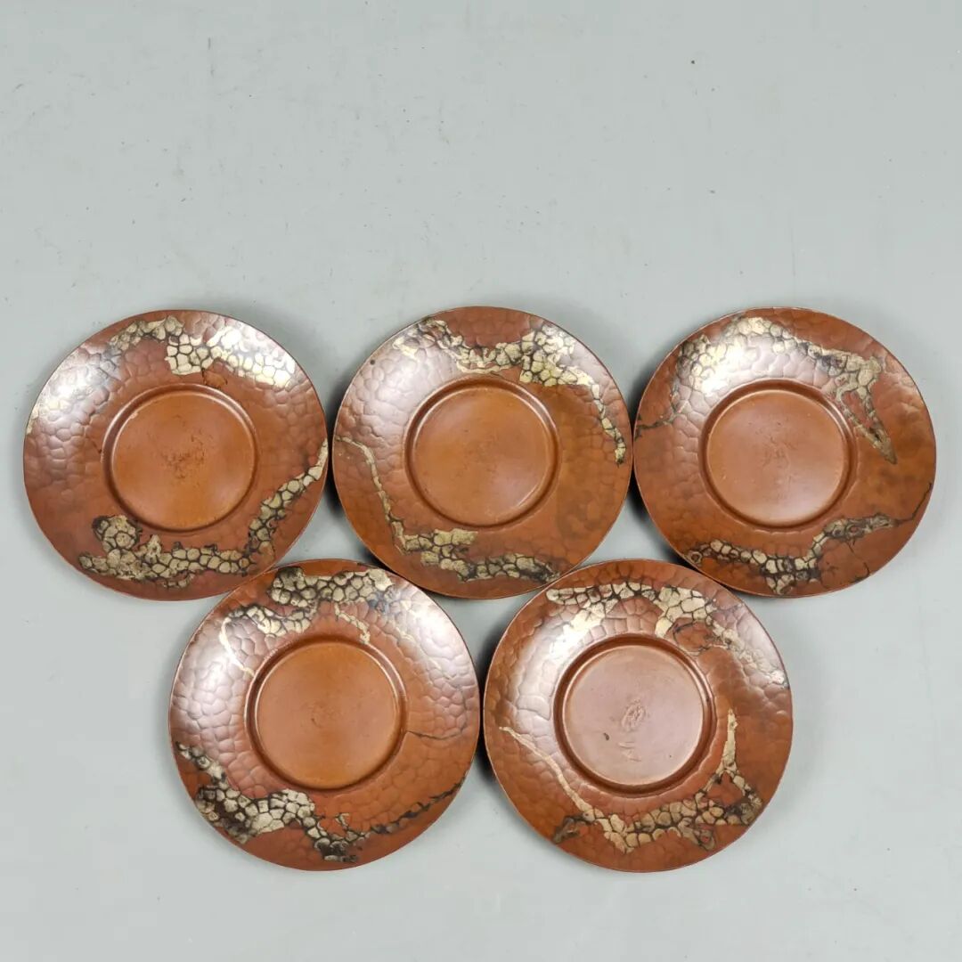 日本玉川堂造金彩叶文日本铜茶托一套5个。