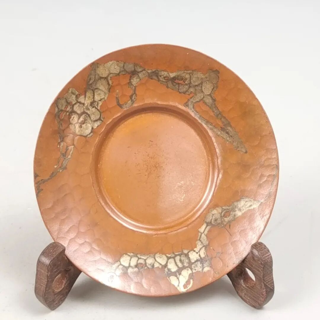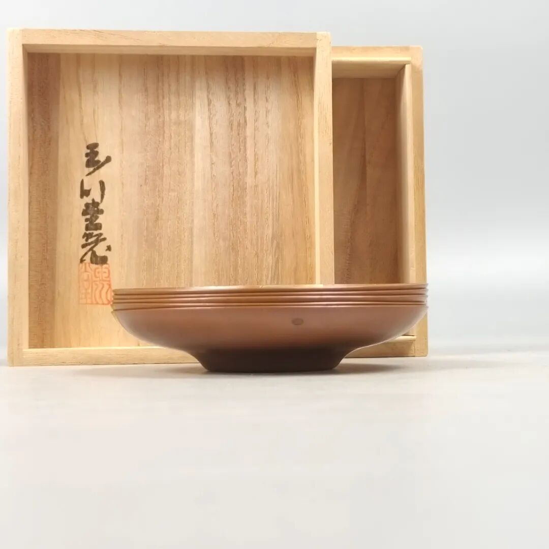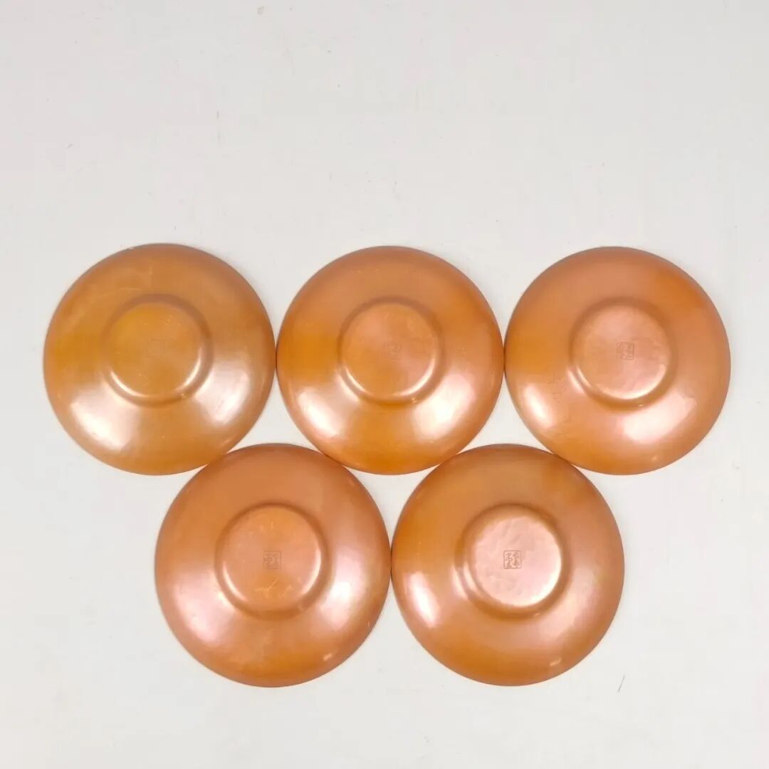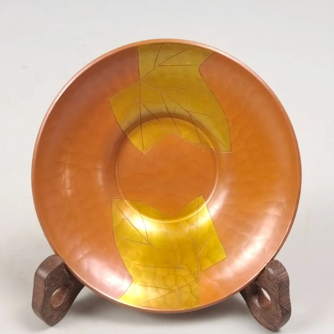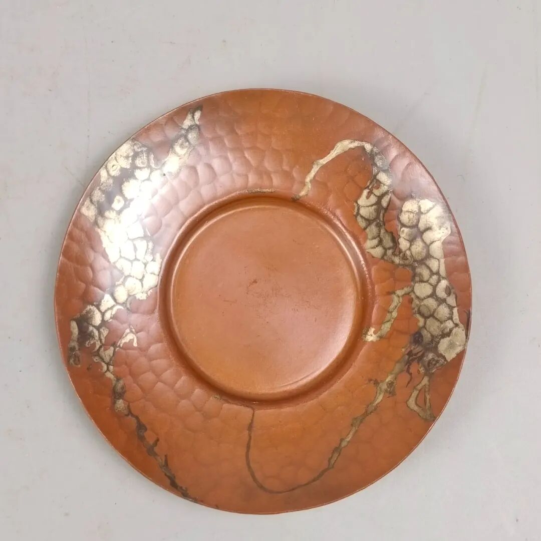 日本玉川堂造金彩叶文日本铜茶托一套5个。