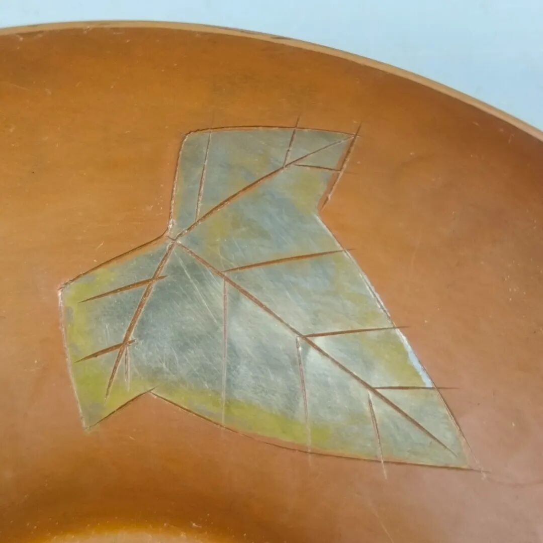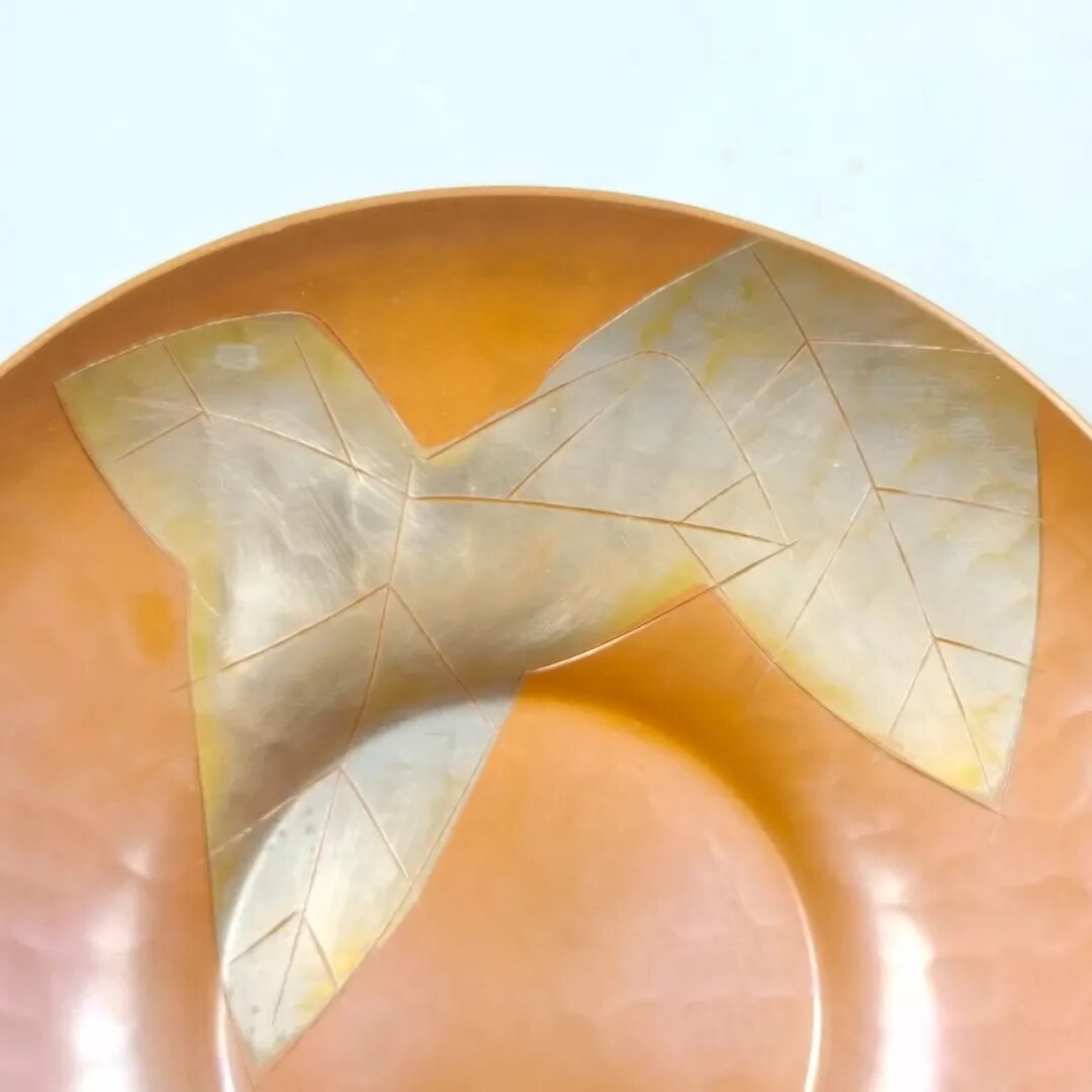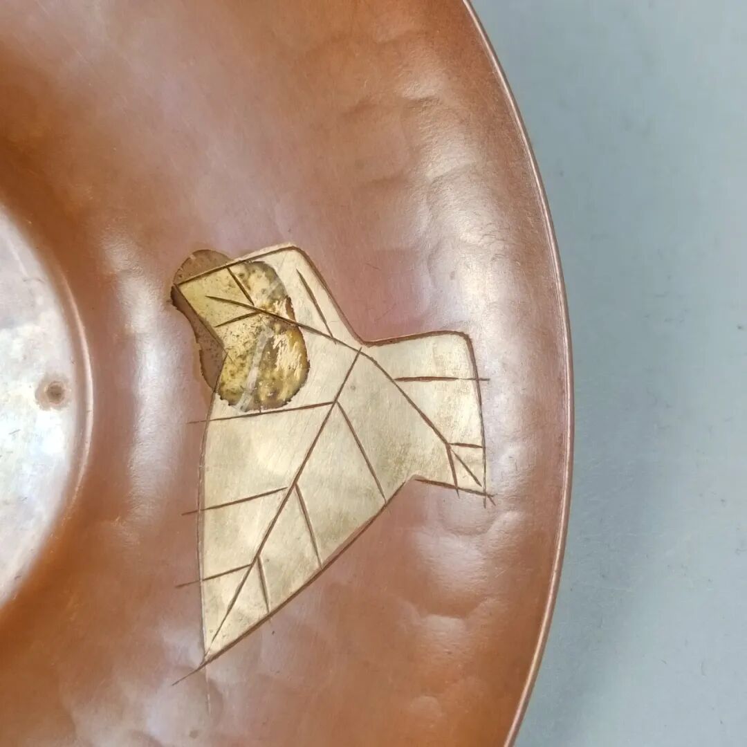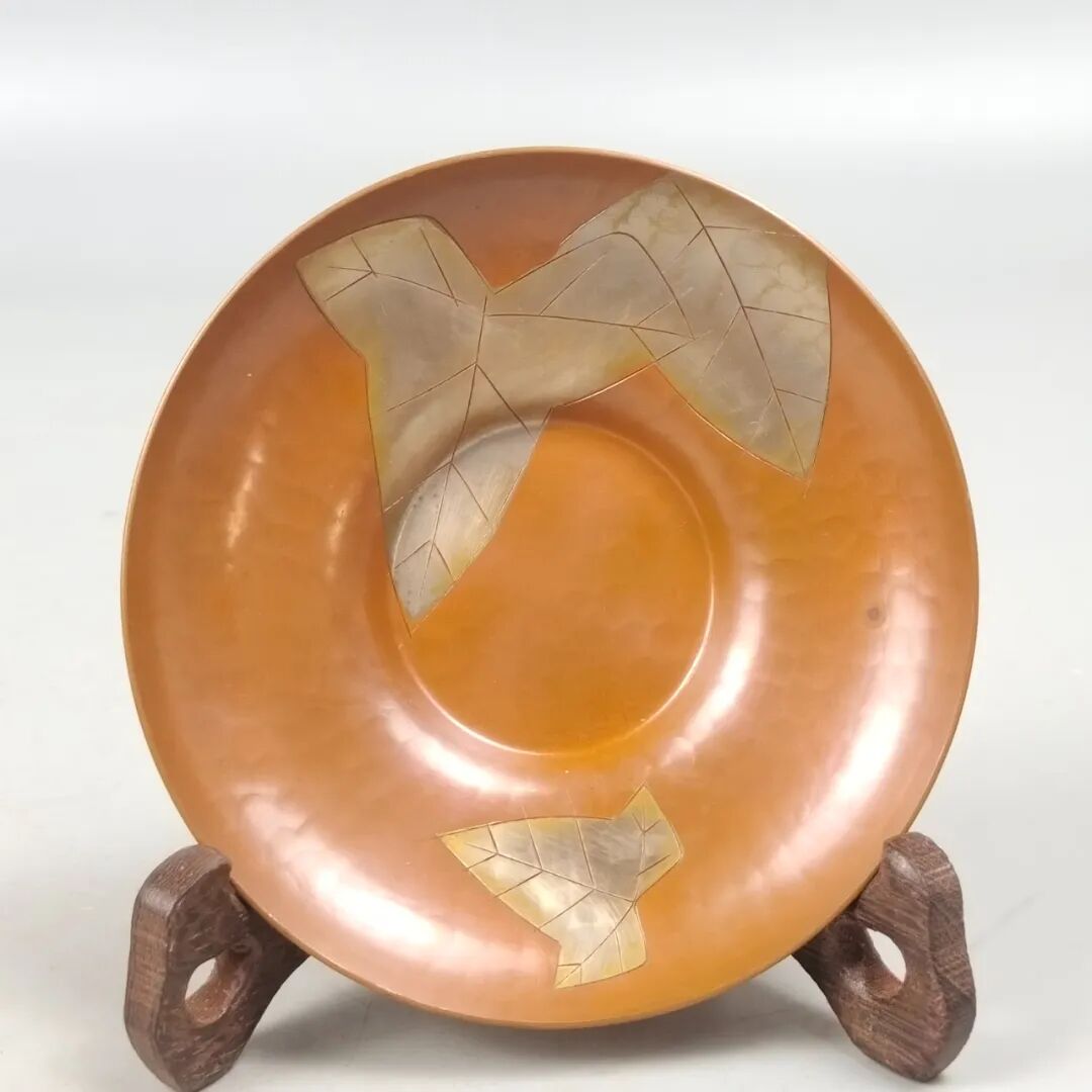 日本玉川堂造金彩叶文日本铜茶托一套5个。