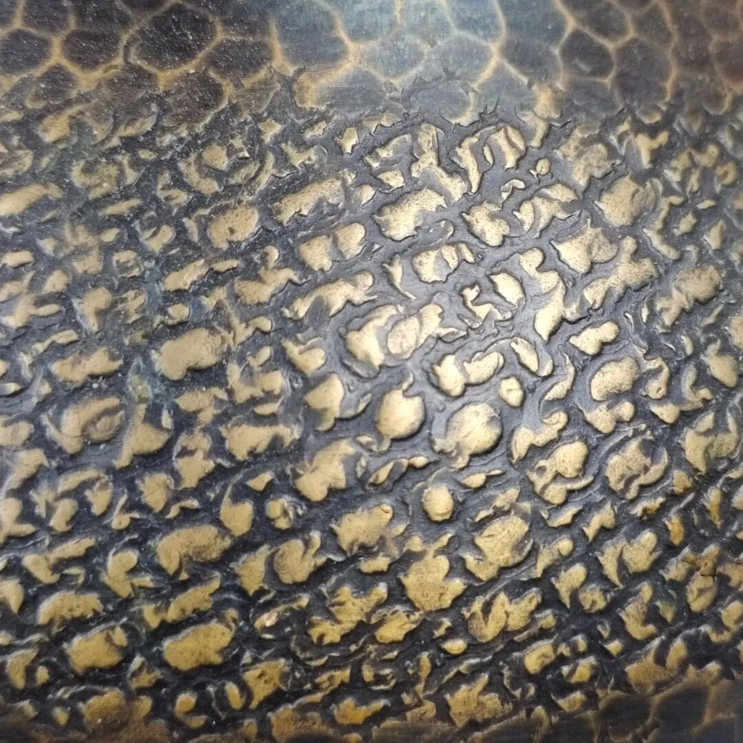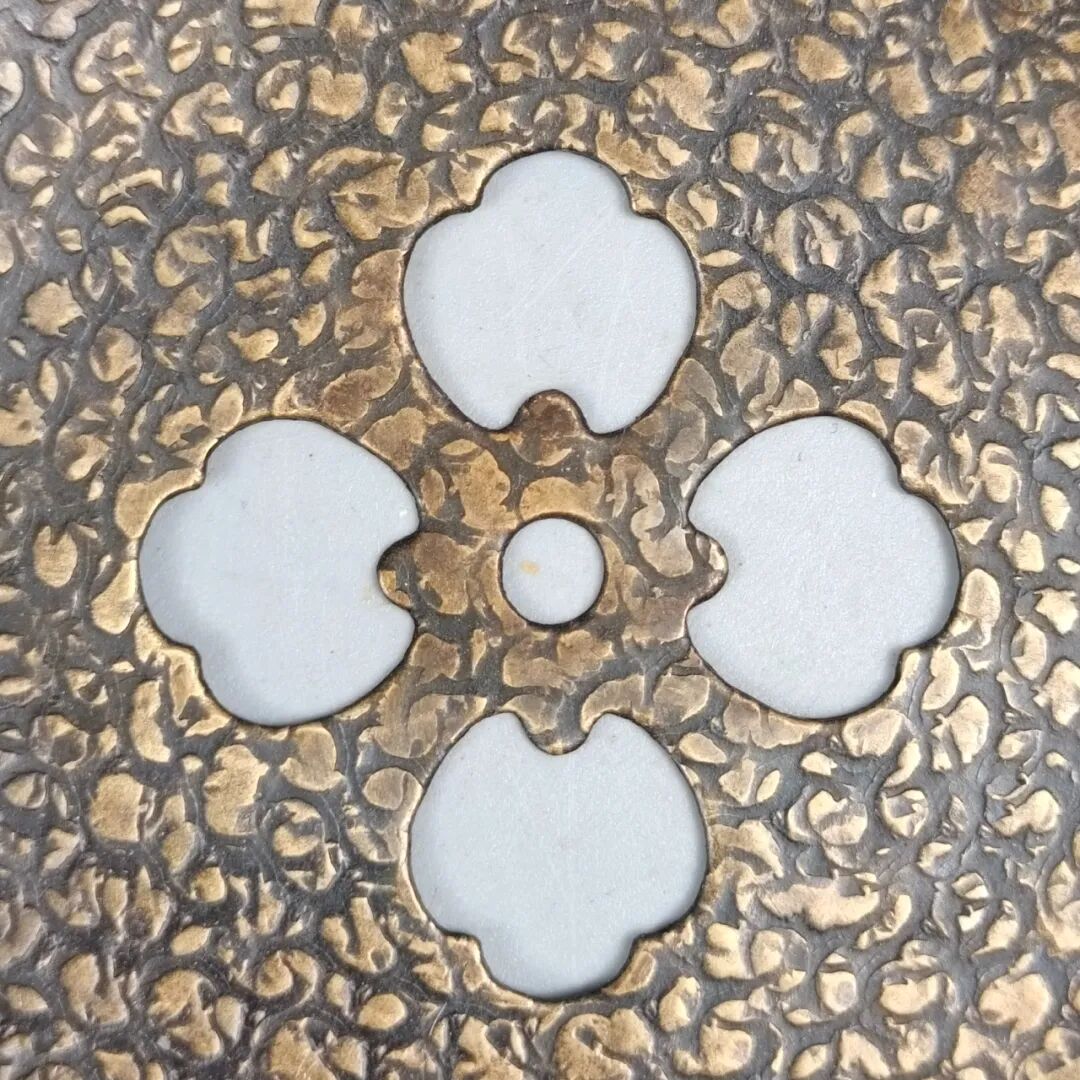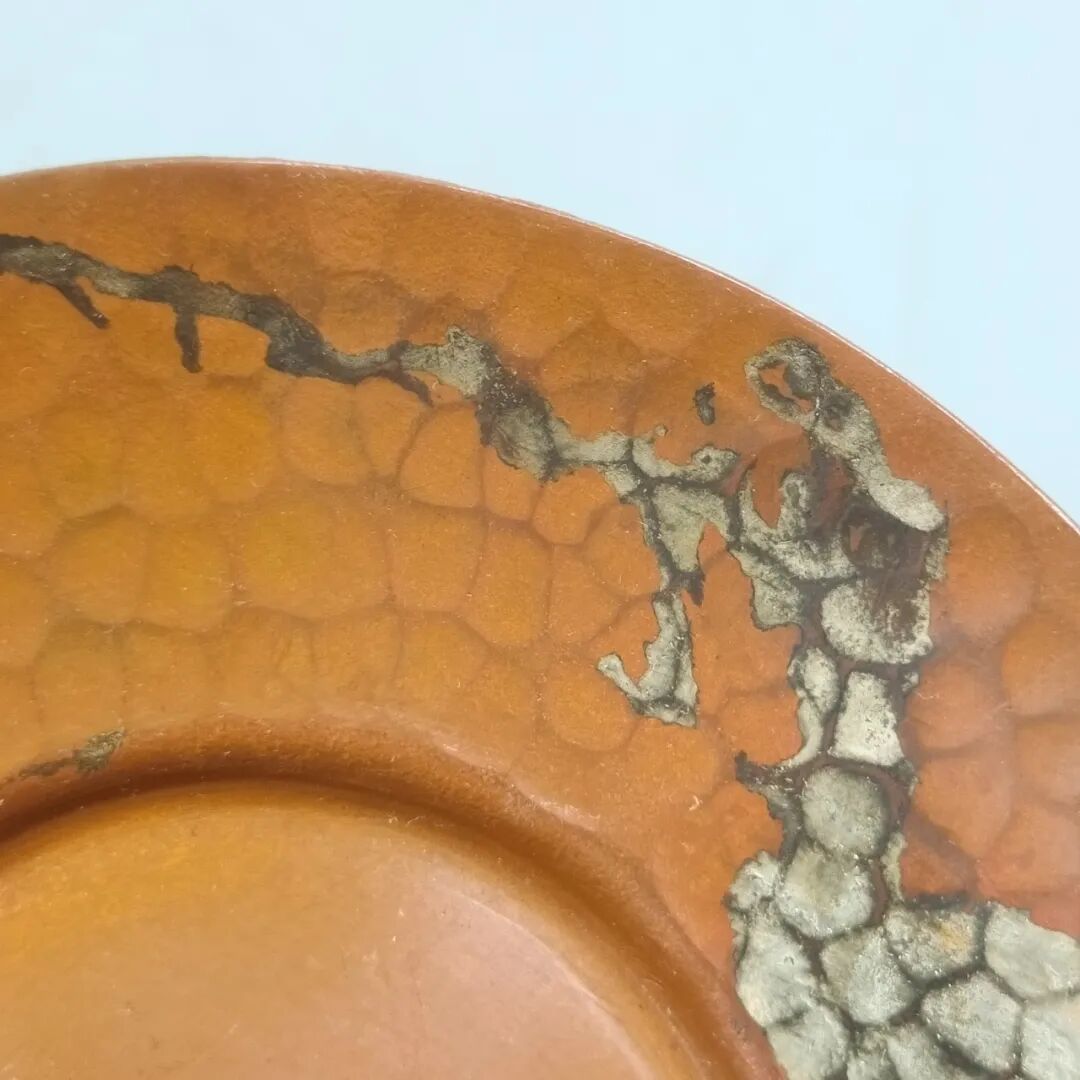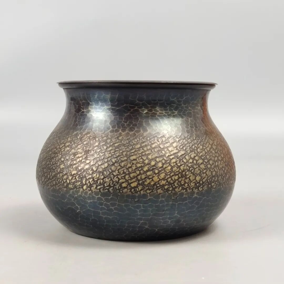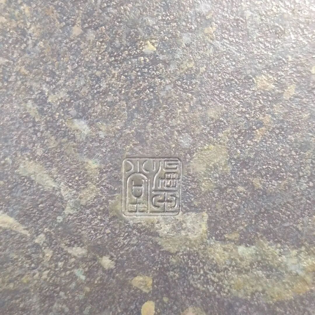 斑紫铜盖,虫蚀纹摘,纯银摘托。状态良好。