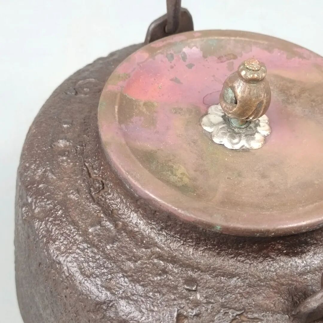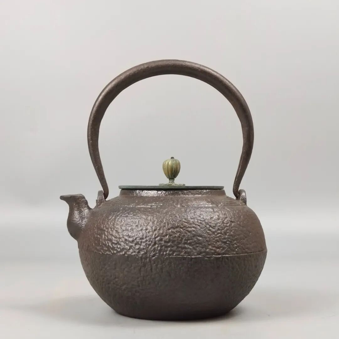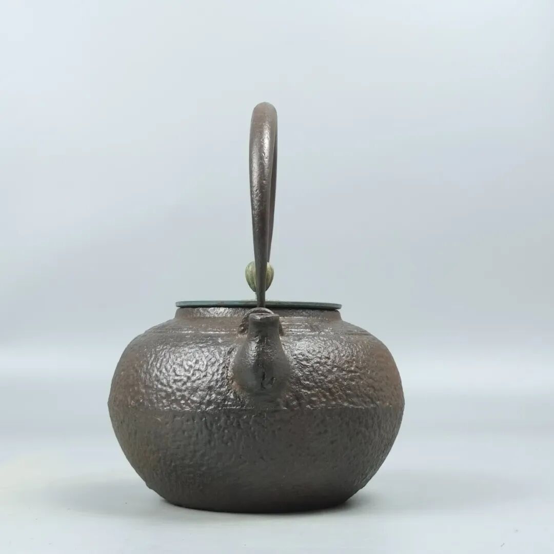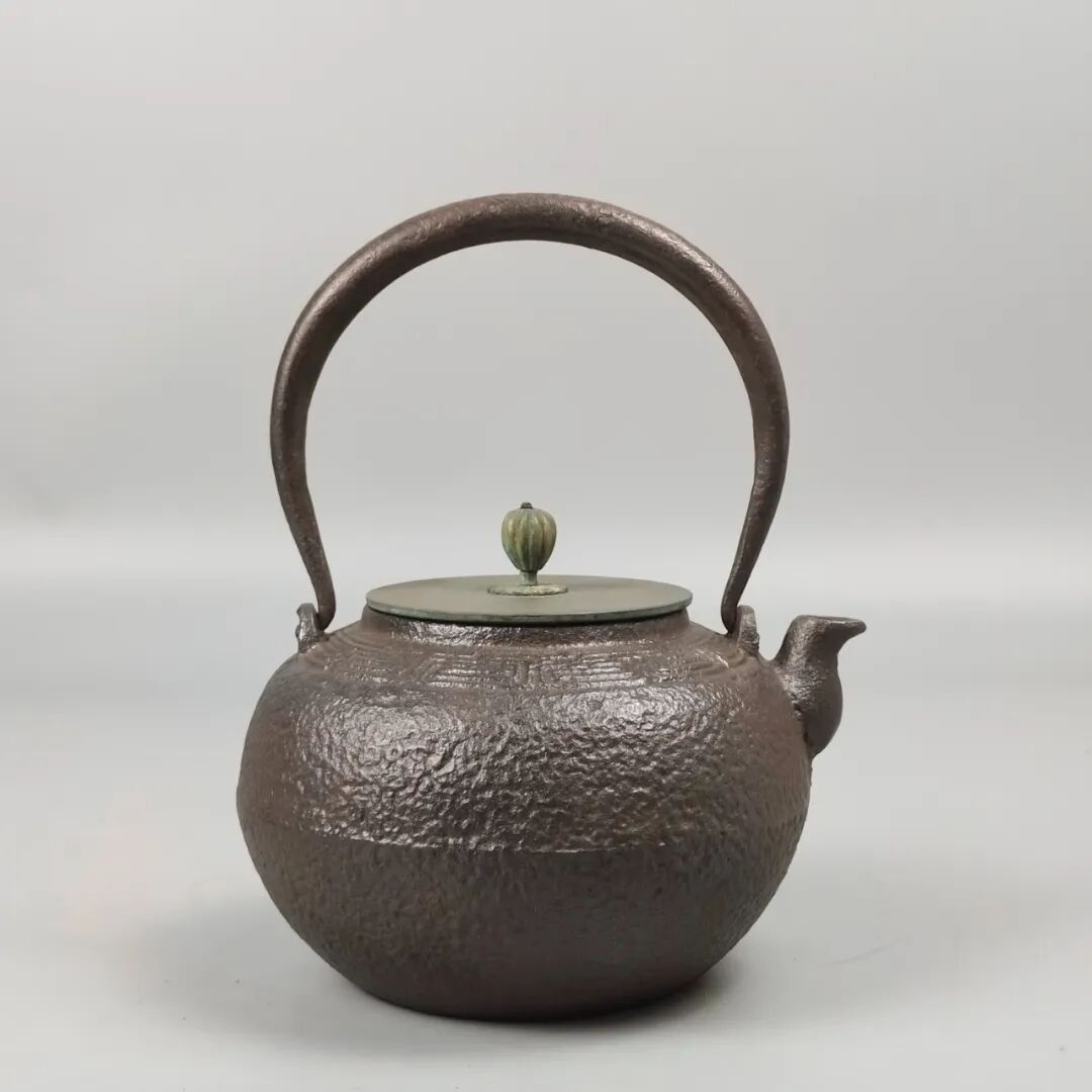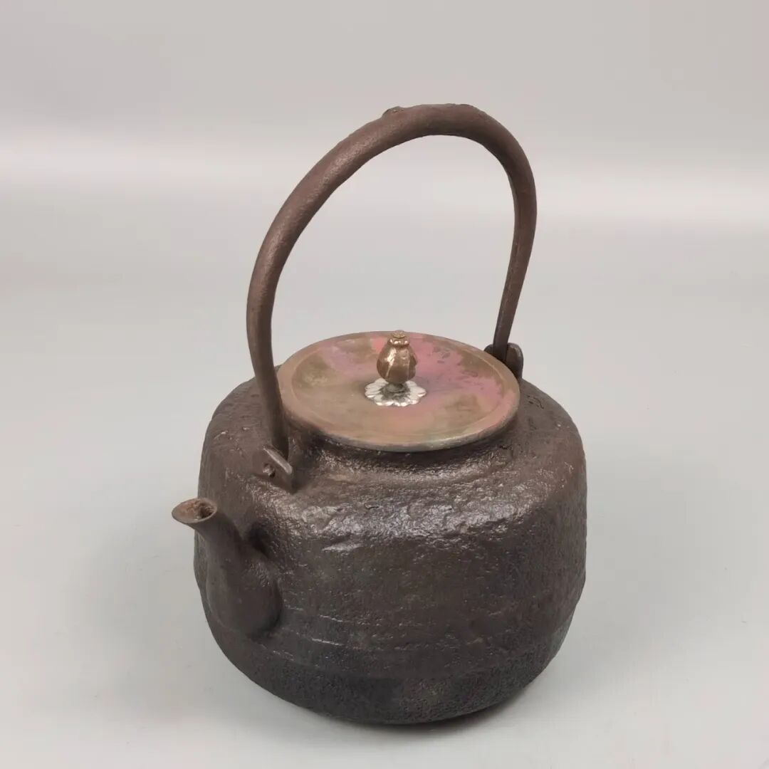 昭和时期京都瑞云堂造平丸形日本铁壶。