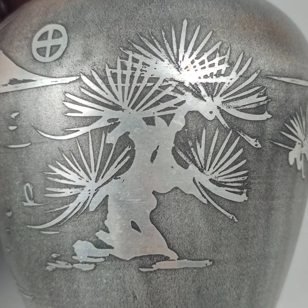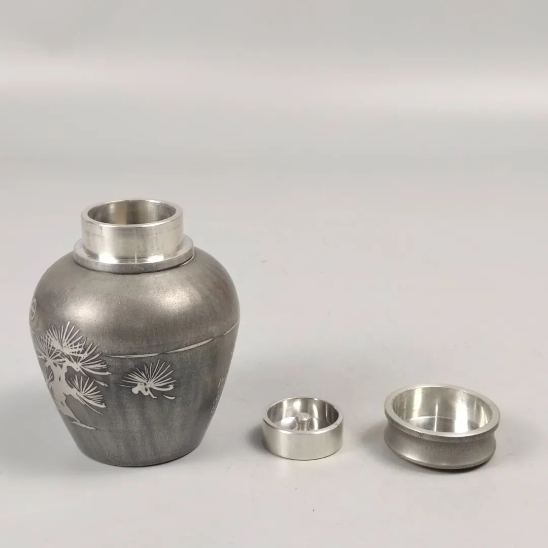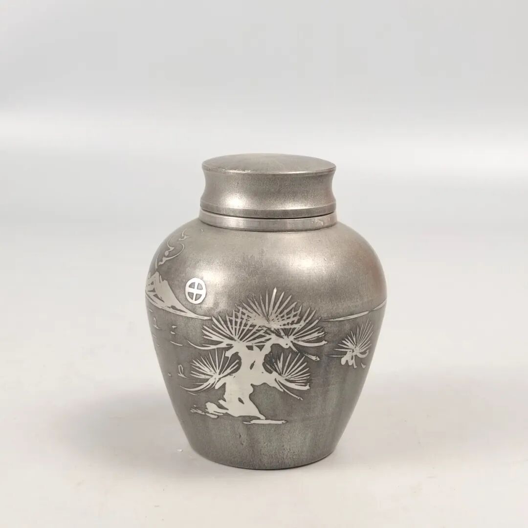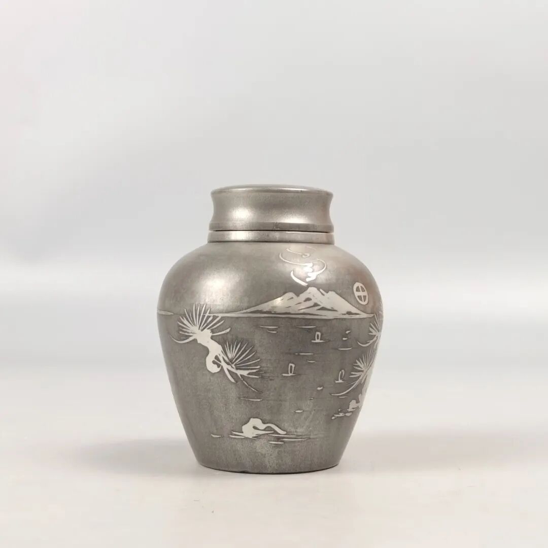 正锡岩切造日本纯锡茶筒茶叶罐。