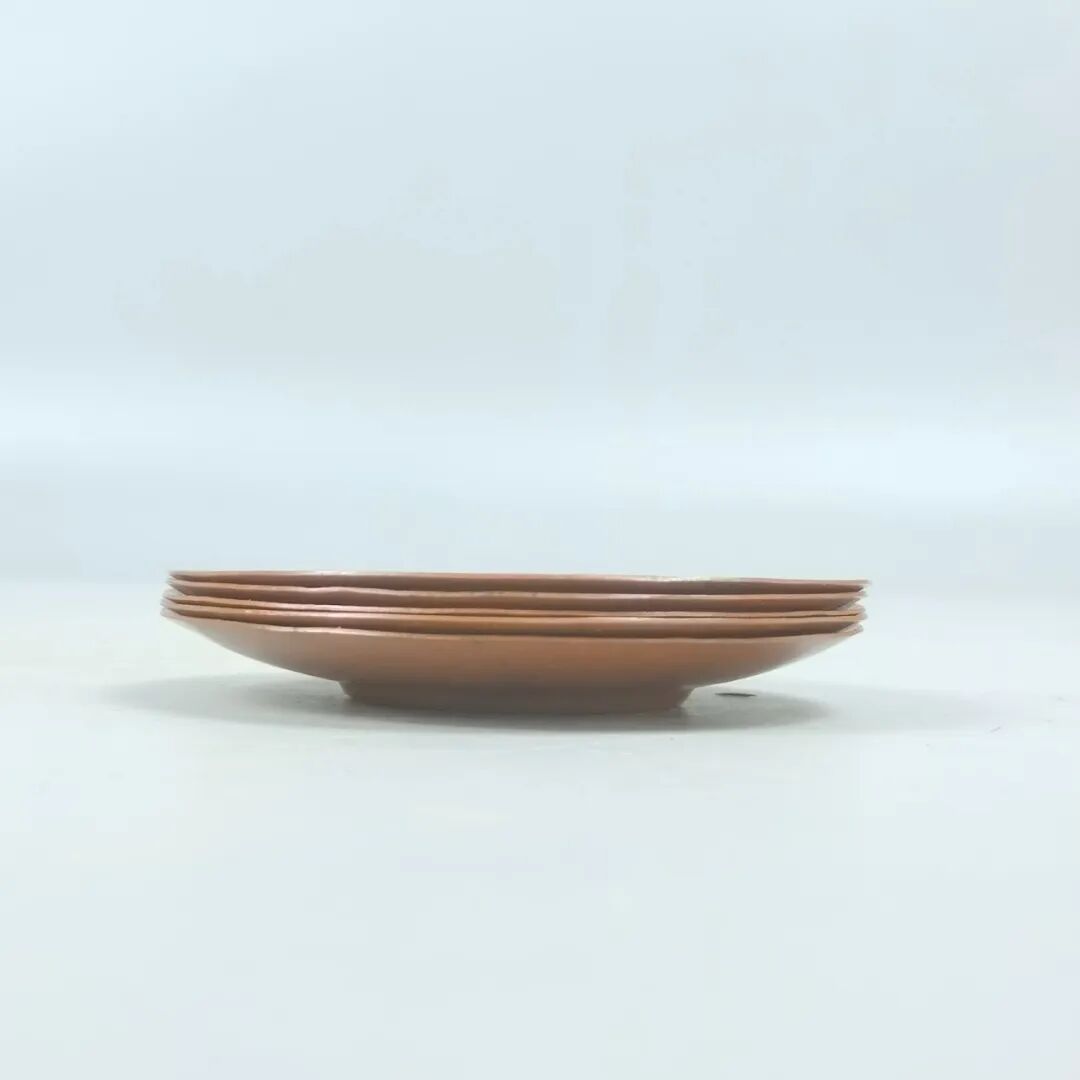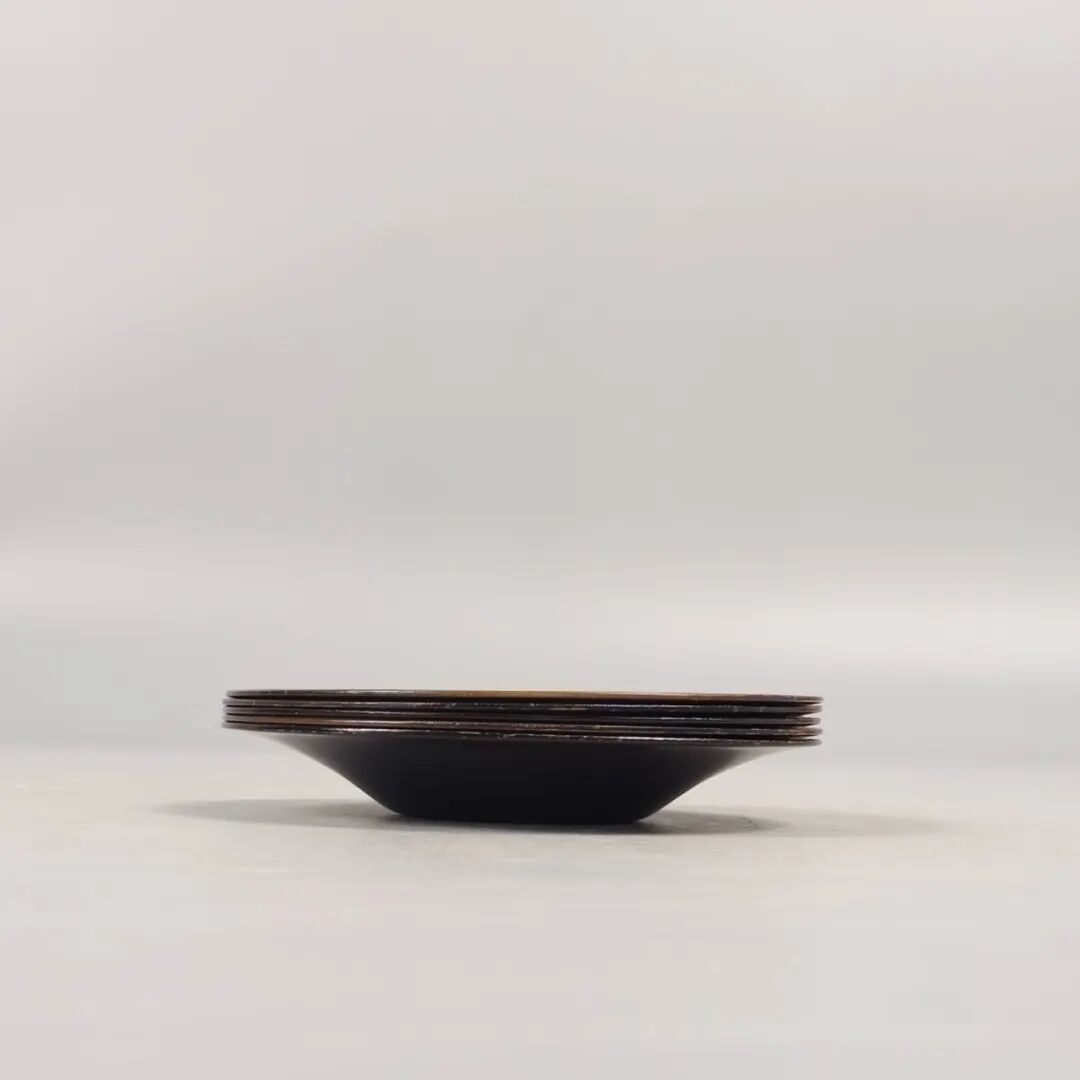 长寿堂造金彩叶文日本铜茶托一套5个。